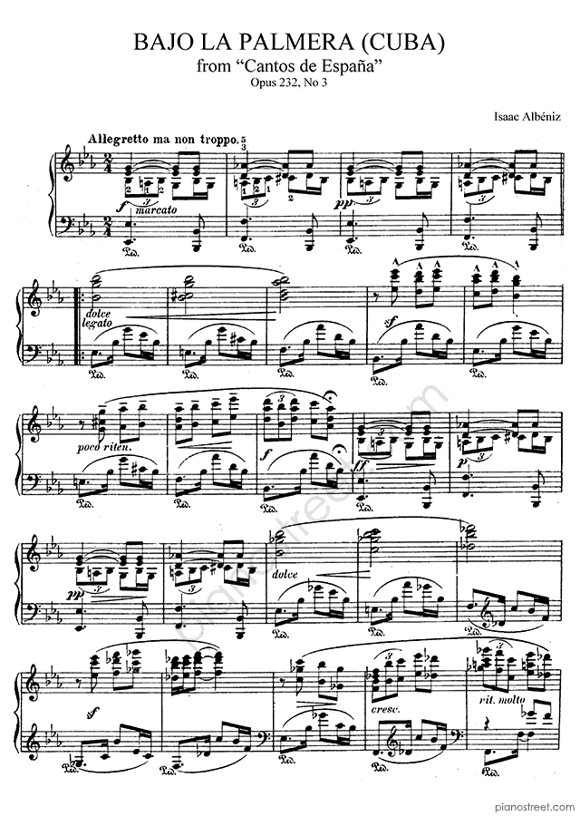 Albéniz: Bajo la palmera (Cuba) Op. 232 No. 3 in E-flat Major . DOWNLOAD piano sheet music from Piano Street digital sheet music library.