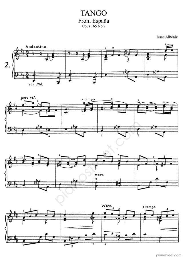 Albéniz: Tango Op. 165 No. 2 (published in 1890) . DOWNLOAD piano sheet music from Piano Street digital sheet music library.