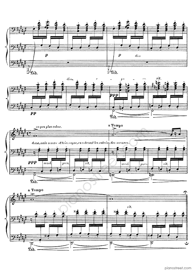 This piece is composed by Isaac Albéniz and was published in 1906. Title: El Corpus en Sevilla, No. 3 in F-sharp Minor from Iberia. The difficulty level if graded by ABRSM would be approximately 8+ and it belongs to the Late Romantic period.