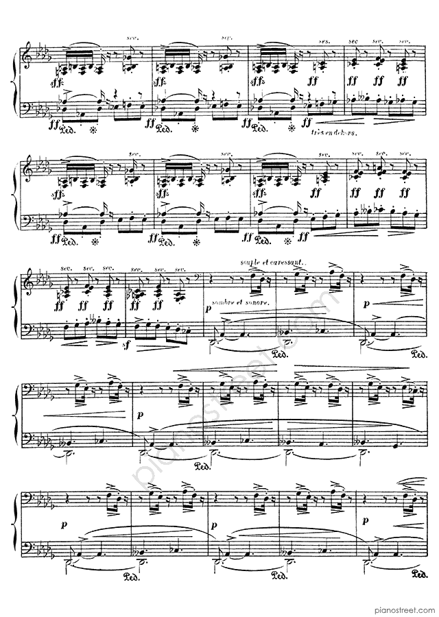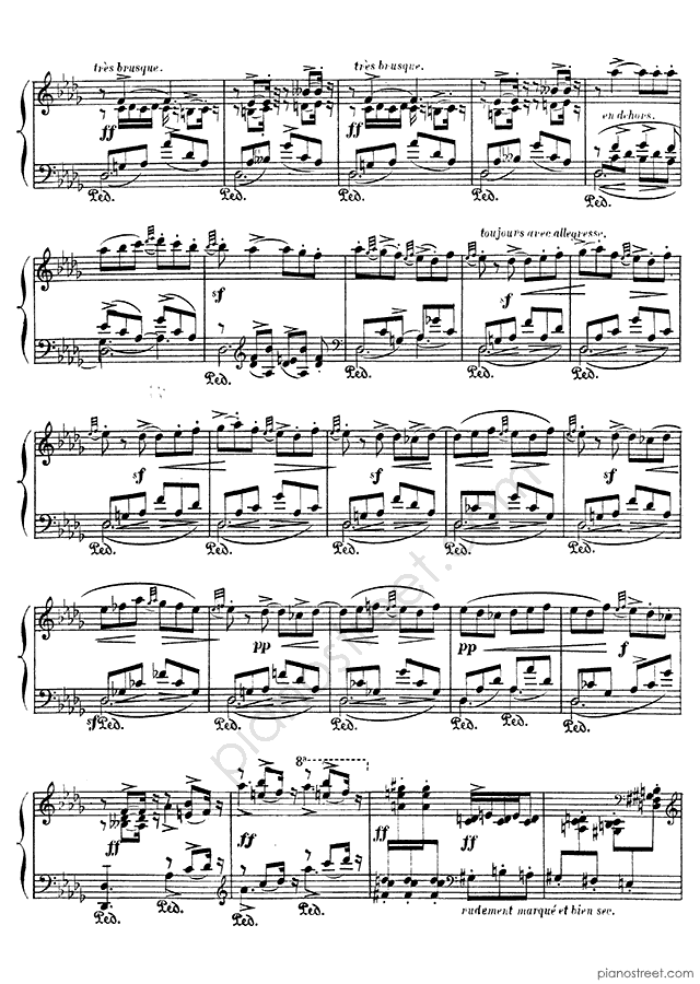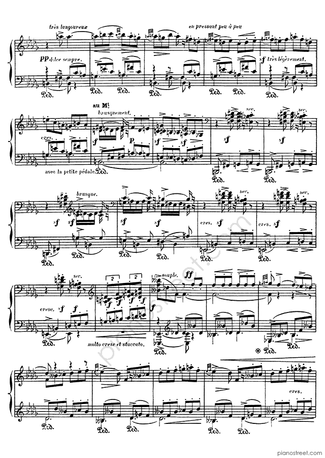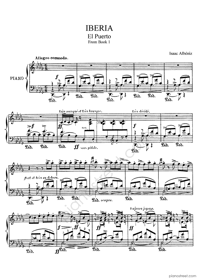 Piano sheet music and recordings. This piece is from Iberia by Isaac Albéniz: El Puerto No. 2 in D-flat Major (published in 1906) . Level 7, Period: Late Romantic