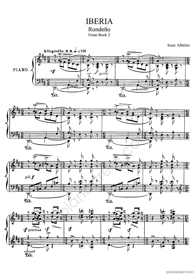Albéniz: Rondeña No. 4 in D Major (published in 1906) . DOWNLOAD piano sheet music from Piano Street digital sheet music library.