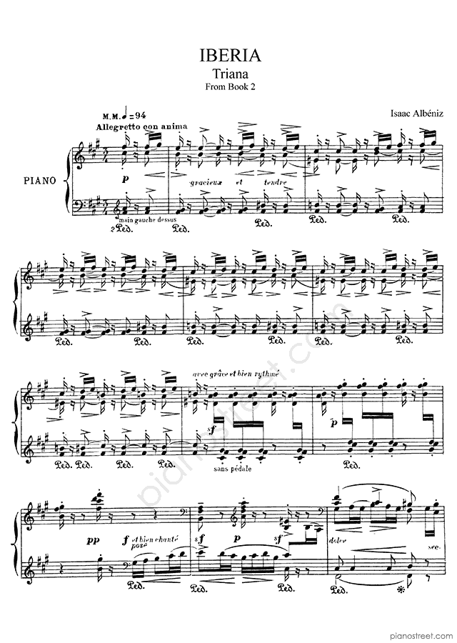 Triana - No. 6 is a piano piece by the late romantic composer Isaac Albéniz who lived between the years 1860 and 1909.