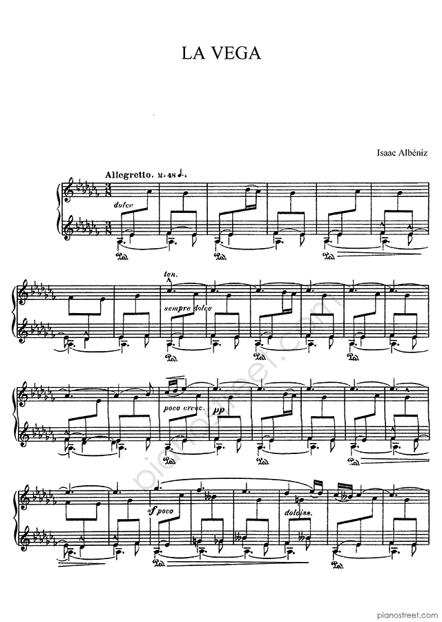 DOWNLOAD: Isaac Albéniz - La Vega in A-flat Minor ( by Albéniz). Piano sheet music to print immediately or to view in mobile devices.