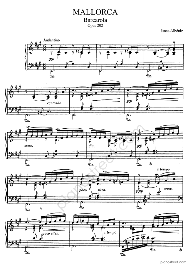 Albéniz: Mallorca (Barcarola) Op. 202 in F-sharp Minor . DOWNLOAD piano sheet music from Piano Street digital sheet music library.