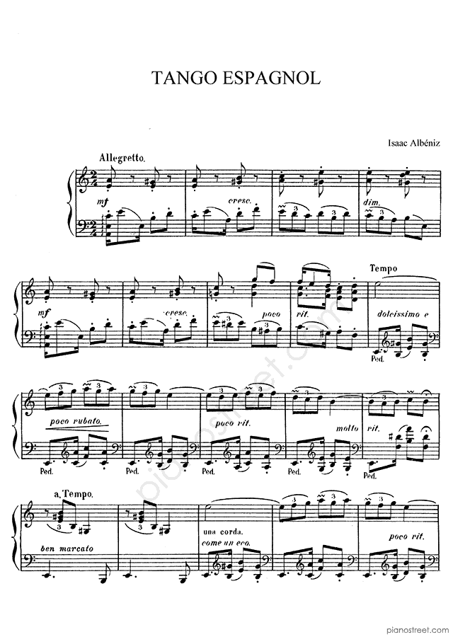 Albéniz: Tango Espagnol in A Minor . DOWNLOAD piano sheet music from Piano Street digital sheet music library.
