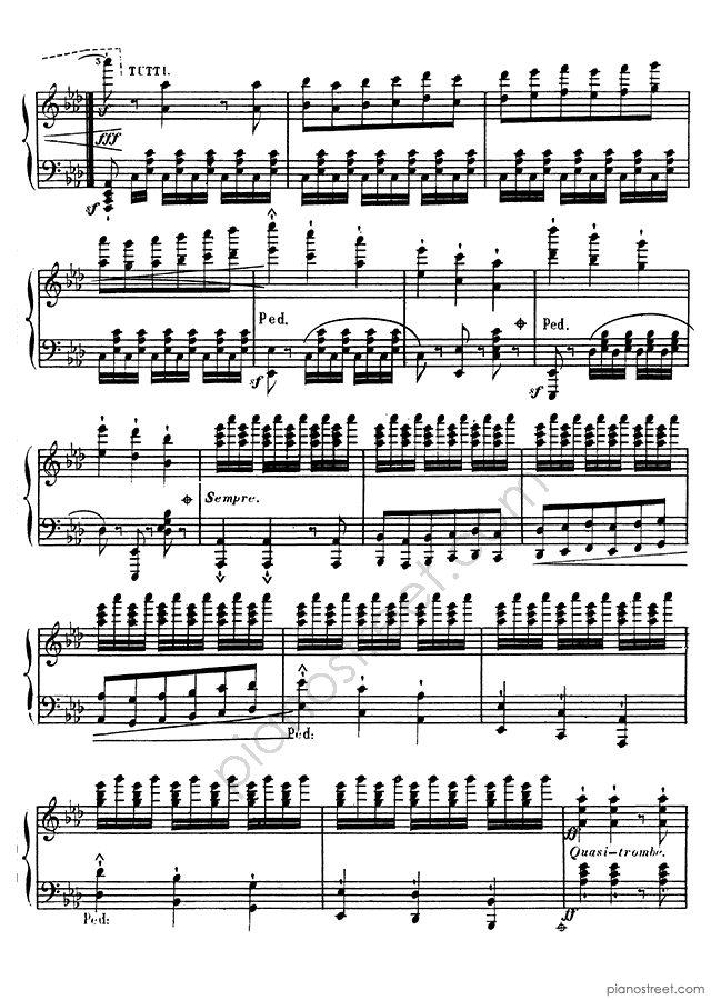 This piece is composed by Charles-Valentin Alkan and was published in 1857. Title: Concerto 1st part, Op. 39 No. 8 in G-sharp Minor from Twelve Studies in all the Minor Keys. The difficulty level if graded by ABRSM would be approximately 8+ and it belongs to the Late Romantic period.