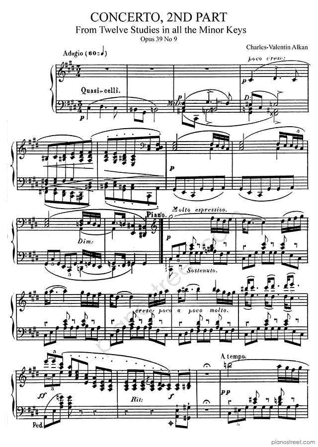 Alkan: Concerto 2nd part Op. 39 No. 9 in C-sharp Minor (published in 1857) . DOWNLOAD piano sheet music from Piano Street digital sheet music library.