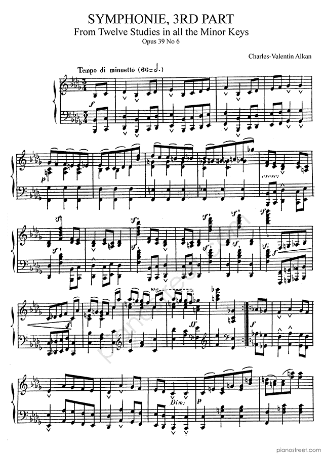 Late Romantic piano sheet music by Charles-Valentin Alkan to download and print instantly: Symphonie 3rd part Op. 39 No. 6 in the key of . Level 8+, compositional type: Study (published in 1857)