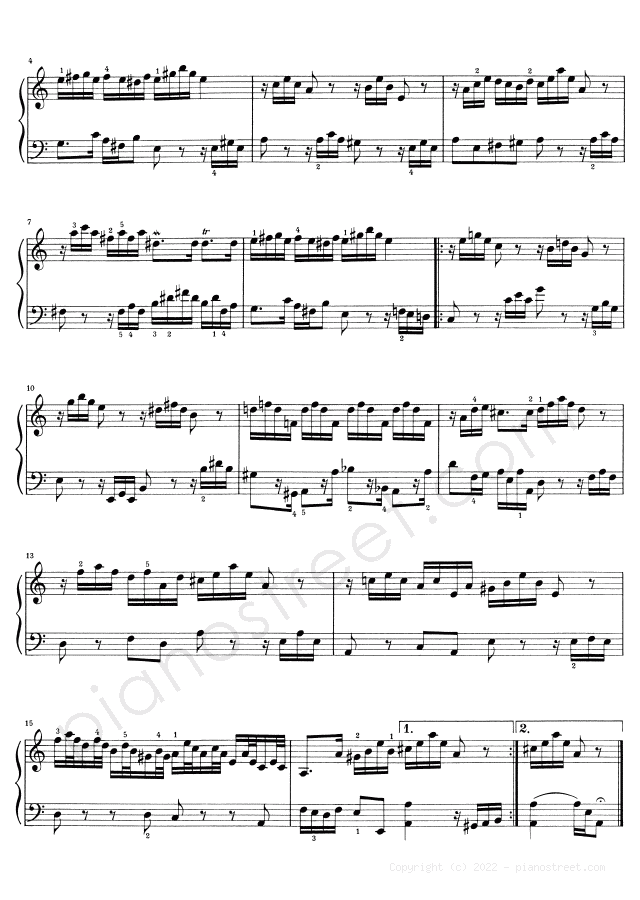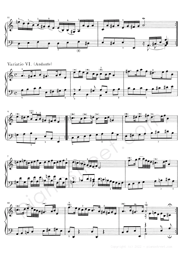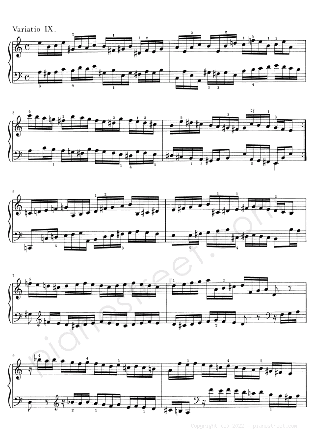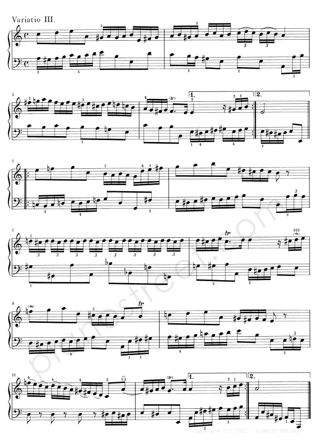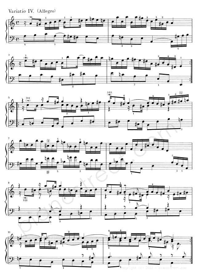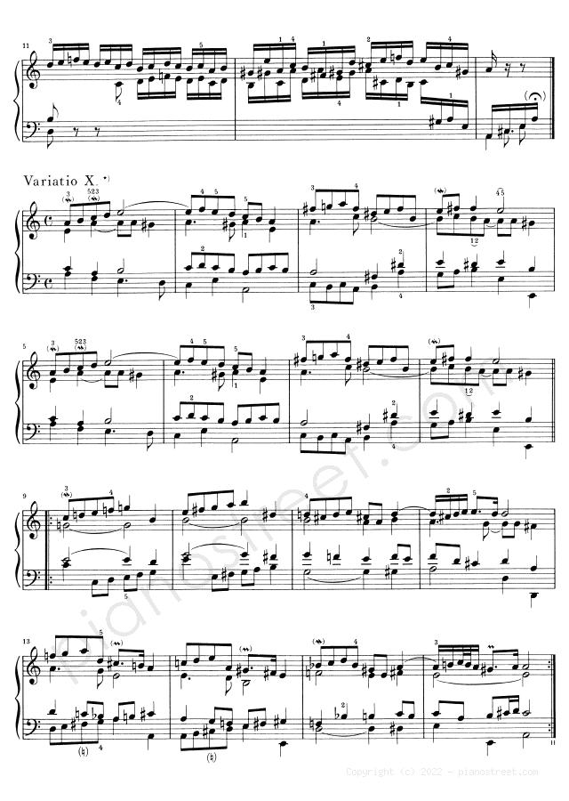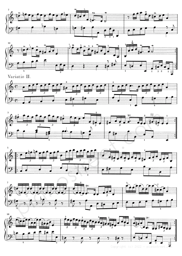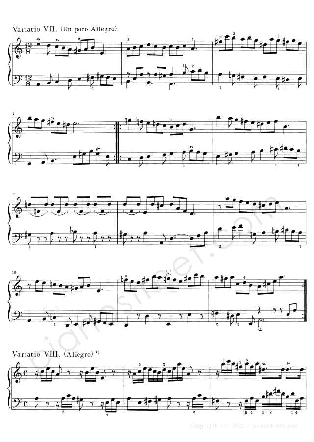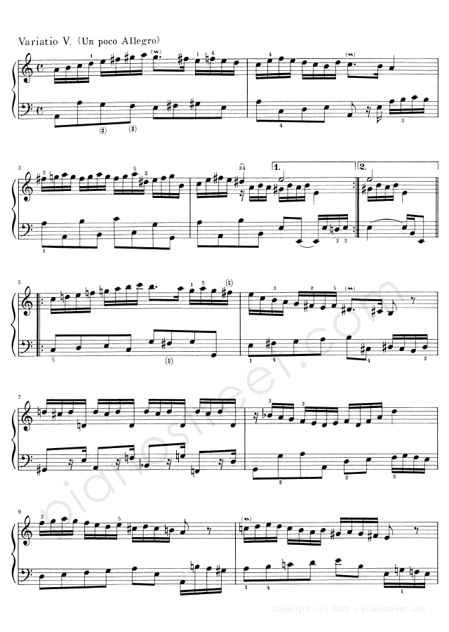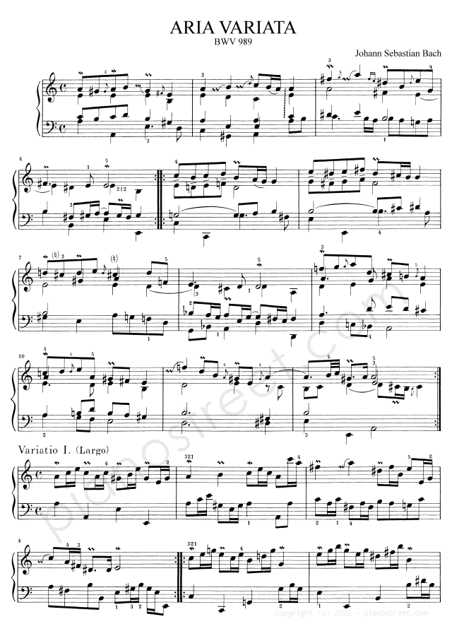 Piano sheet music and recordings. This piece is by Johann Sebastian Bach: Aria Variata BWV 989 in A Minor (published in 1709) . Level 8, Period: Baroque