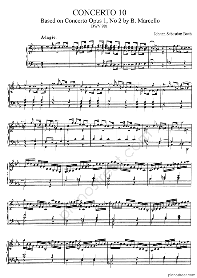 Classical piano sheet music by Bach to download: Concerto 10 BWV 981 in the key of This piece has difficulty level 7 in the category Transcription