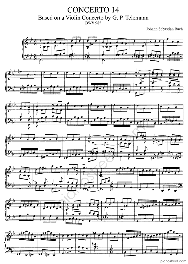 Bach: Concerto 14 BWV 985 in G Minor . DOWNLOAD piano sheet music from Piano Street digital sheet music library.