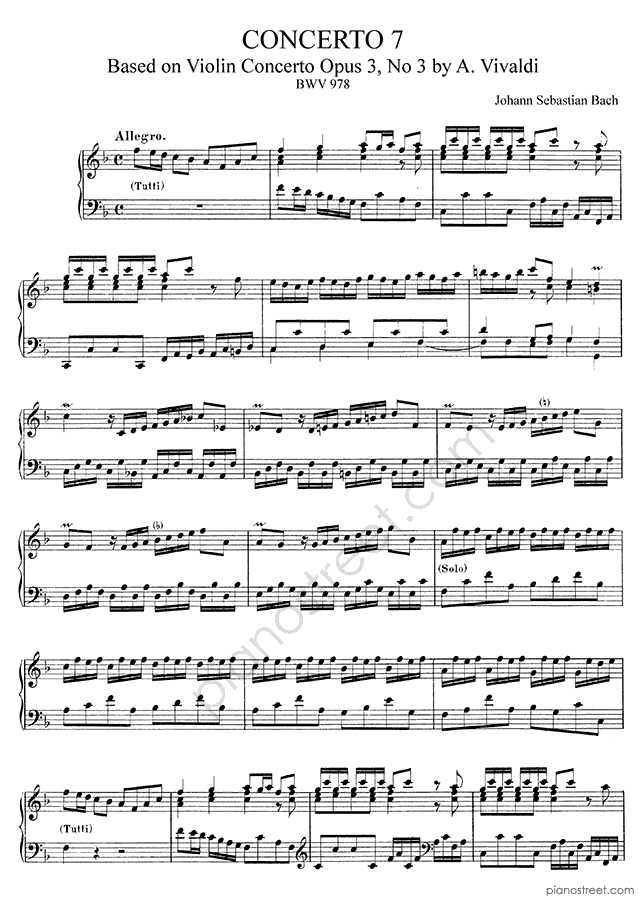 DOWNLOAD: Johann Sebastian Bach - Concerto 7 BWV 978 in F Major ( from Concerto Transcriptions by Bach). Piano sheet music to print immediately or to view in mobile devices.