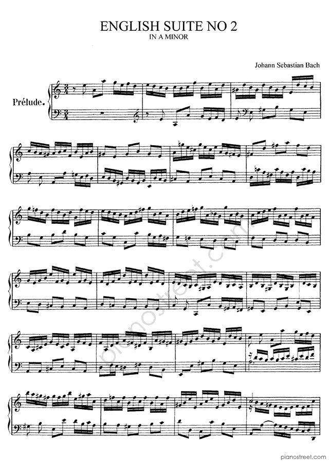 DOWNLOAD: Johann Sebastian Bach - English Suite No. 2 in A Minor ( from English Suites by Bach). Piano sheet music to print immediately or to view in mobile devices.