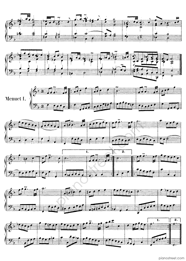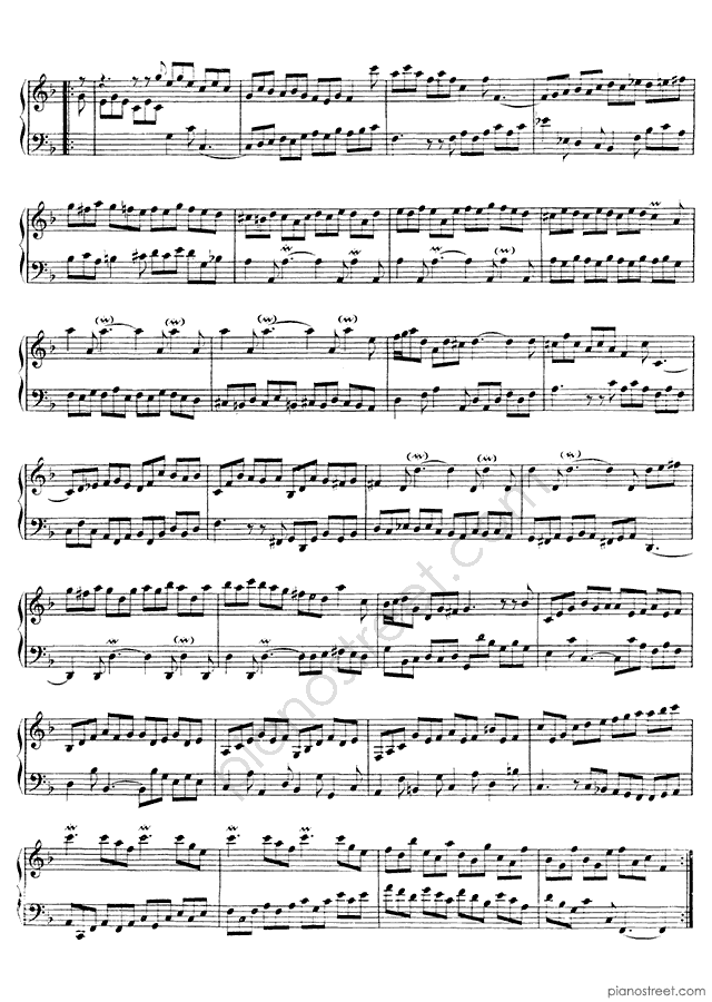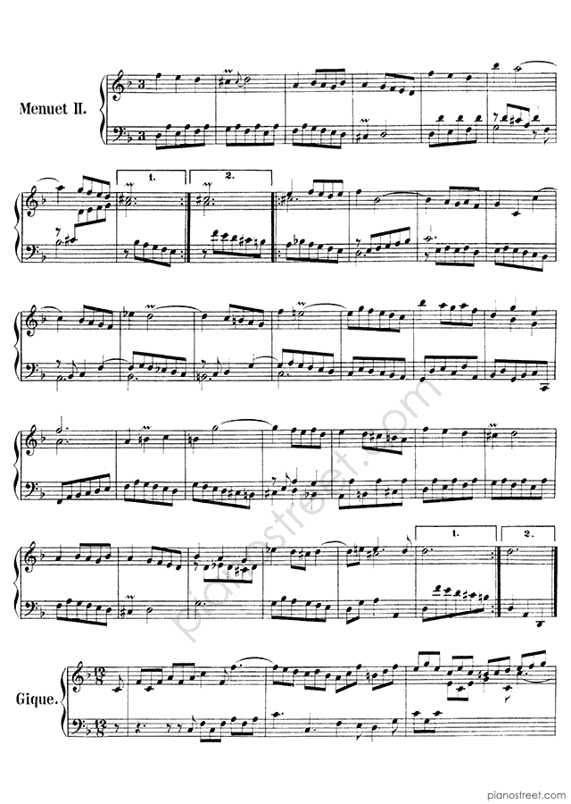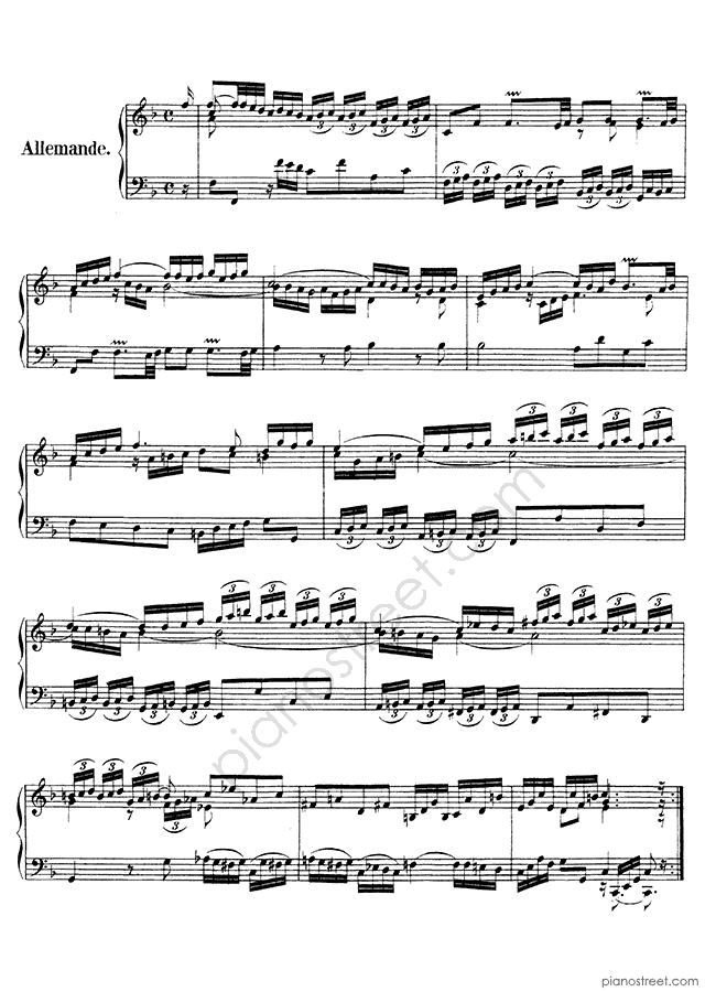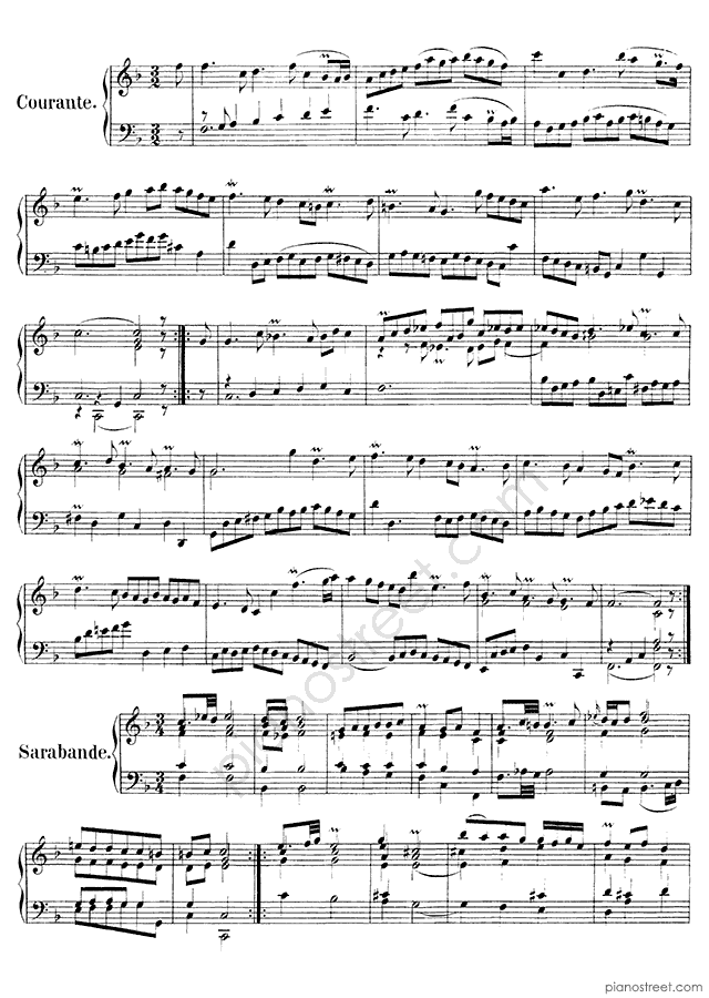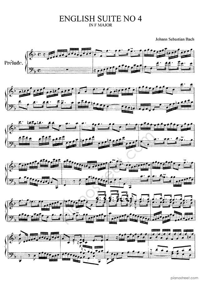 Downloadable piano sheet music from English Suites by Johann Sebastian Bach to print: English Suite No. 4 in F Major (published in 1722)