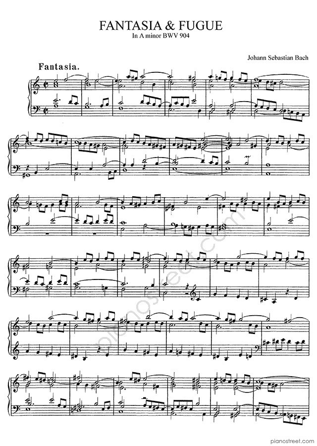 Fantasia & Fugue in A Minor BWV 904 by the composer Johann Sebastian Bach (1685-1750). This piano piece was composed in 1725 and is part of Bach's Miscellaneous pieces.