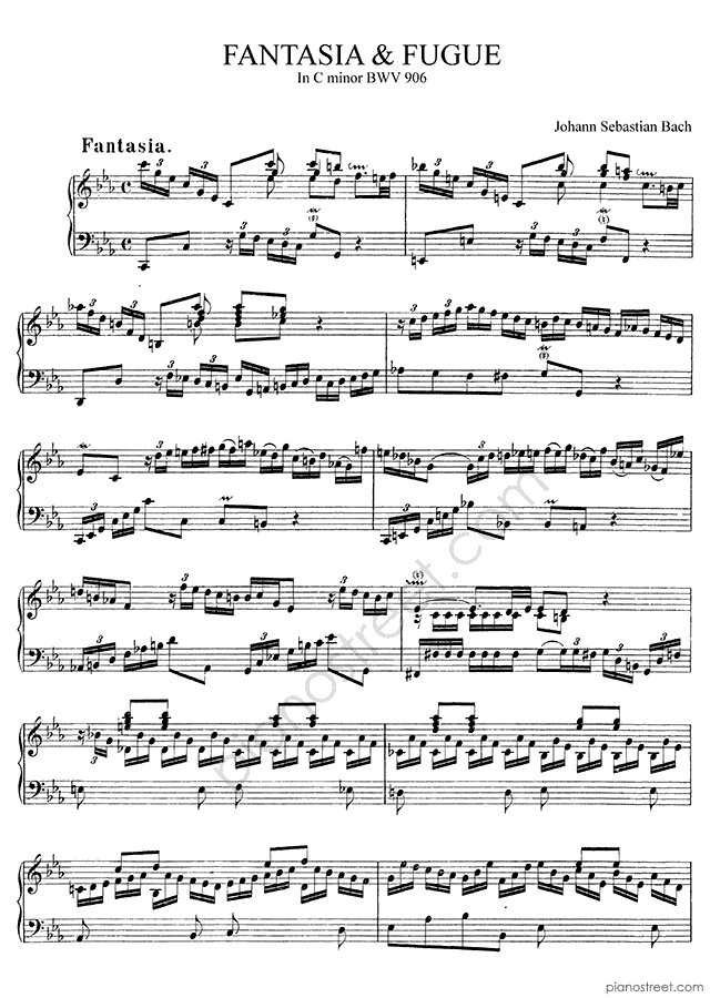 Fantasia & Fugue in C Minor BWV 906 by Johann Sebastian Bach. Sheet music and recordings of thousands of piano pieces by Johann Sebastian Bach and many other famous composers to view in your digital device, print out or listen to.