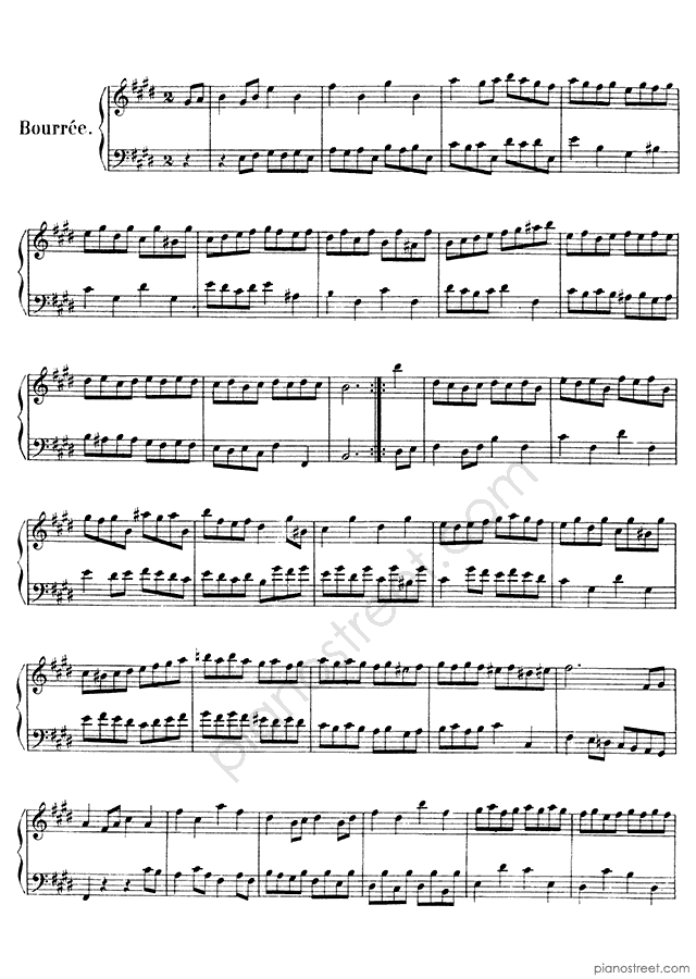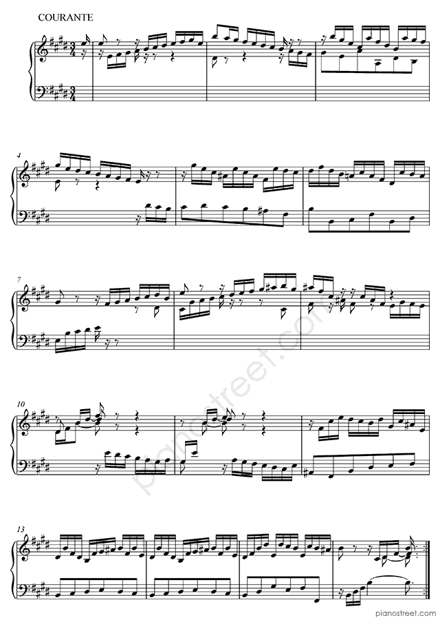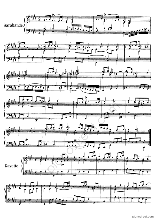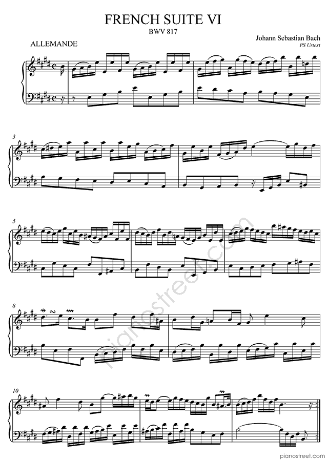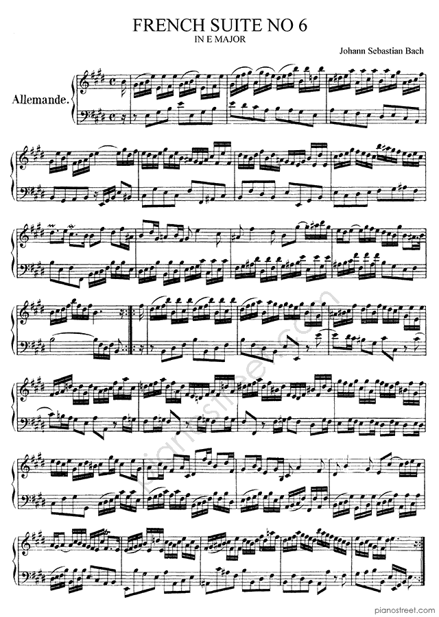 DOWNLOAD French Suite in E Major No. 6 by Johann Sebastian Bach (published in 1722) . High quality classical piano scores from the Piano Street sheet music library.