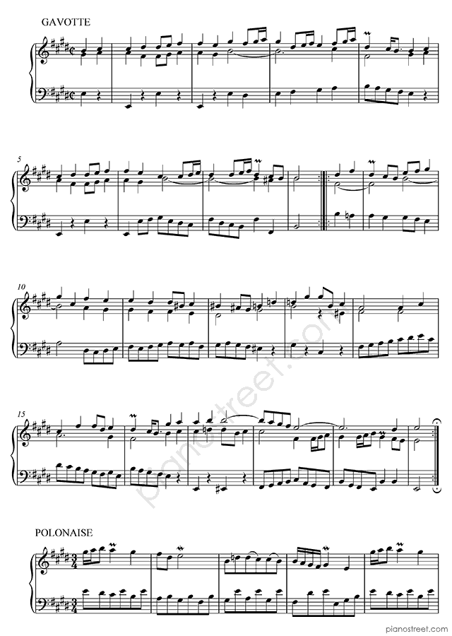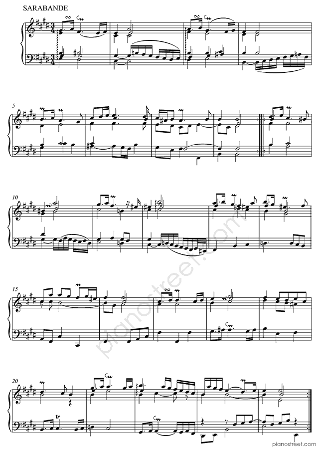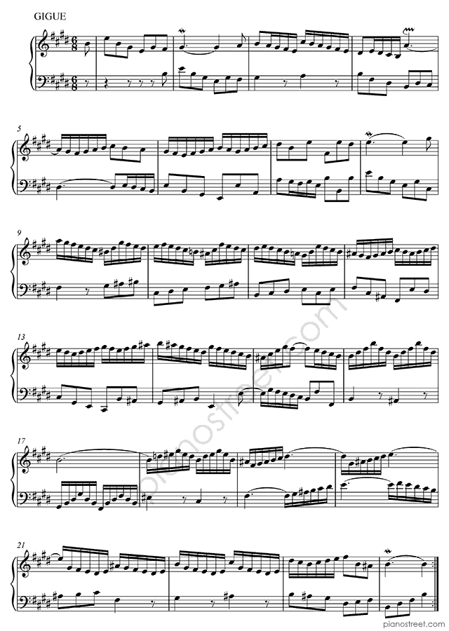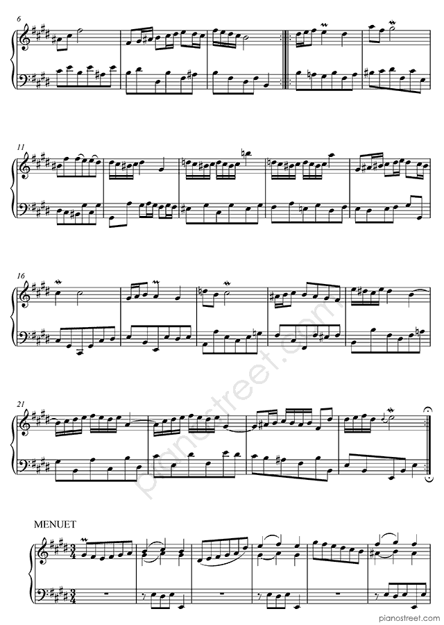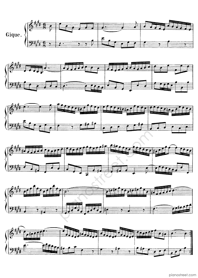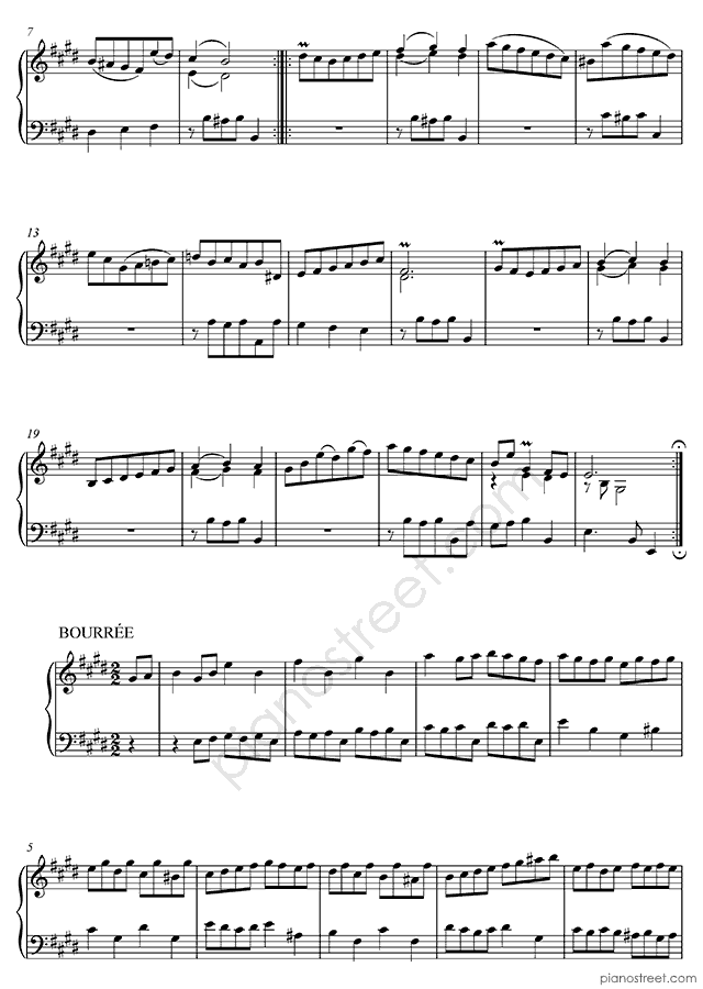 DOWNLOAD French Suite in E Major No. 6 by Johann Sebastian Bach (published in 1722) . High quality classical piano scores from the Piano Street sheet music library.