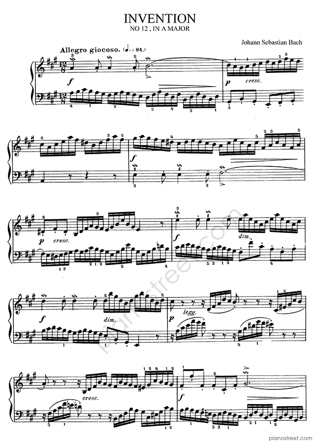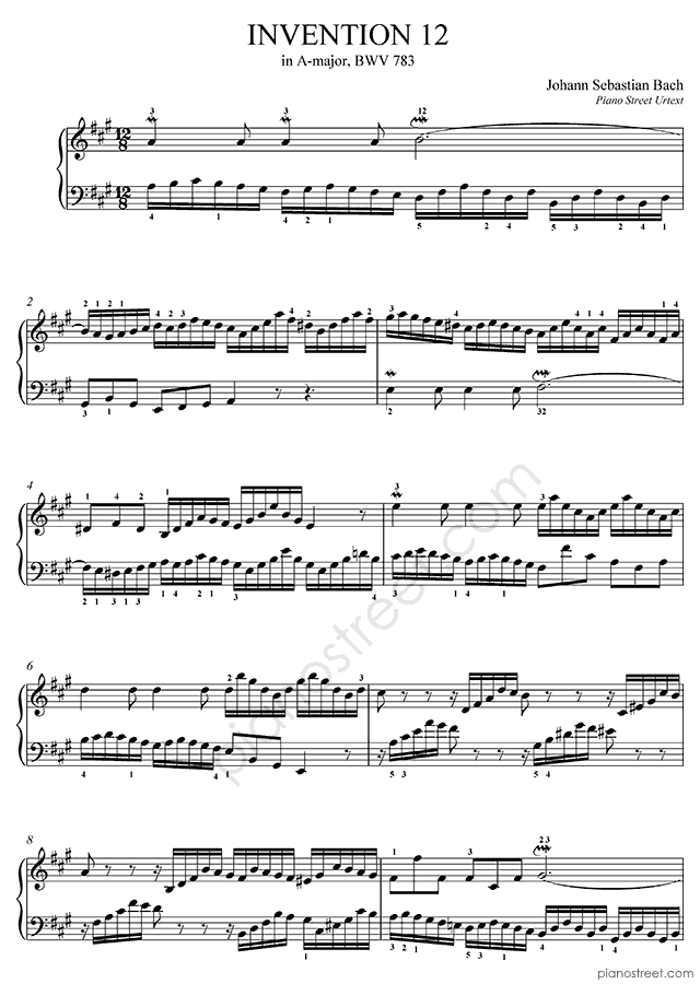 DOWNLOAD: Johann Sebastian Bach - Invention No. 12 in A Major ( from Inventions by Bach). Piano sheet music to print immediately or to view in mobile devices.
