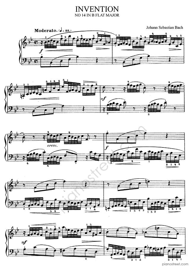 Invention No. 14 in B-flat Major, a composition by the baroque composer Johann Sebastian Bach. The piano score of this piece was first published in 1723 and is part of Inventions by Bach.