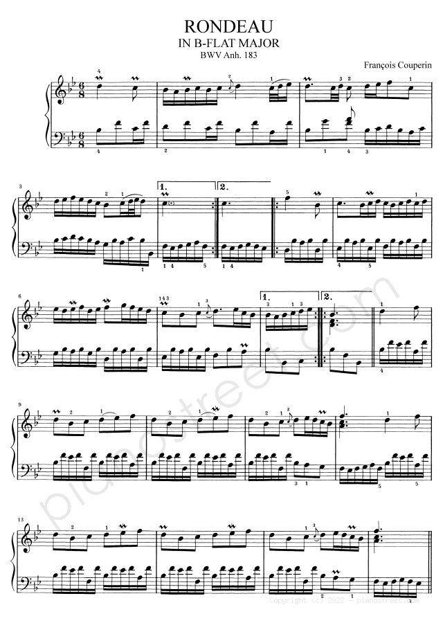 DOWNLOAD Rondeau: Les Bergeries (by F. Couperin) in B-flat Major BWV Anh. 183 by Johann Sebastian Bach (published in 1725) . High quality classical piano scores from the Piano Street sheet music library.
