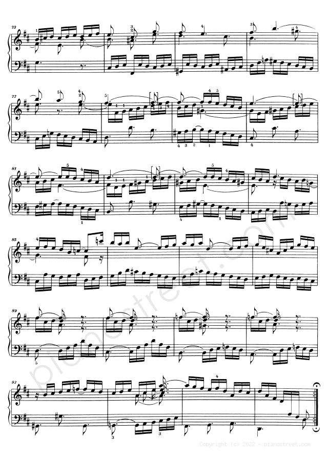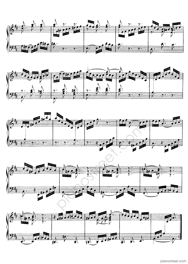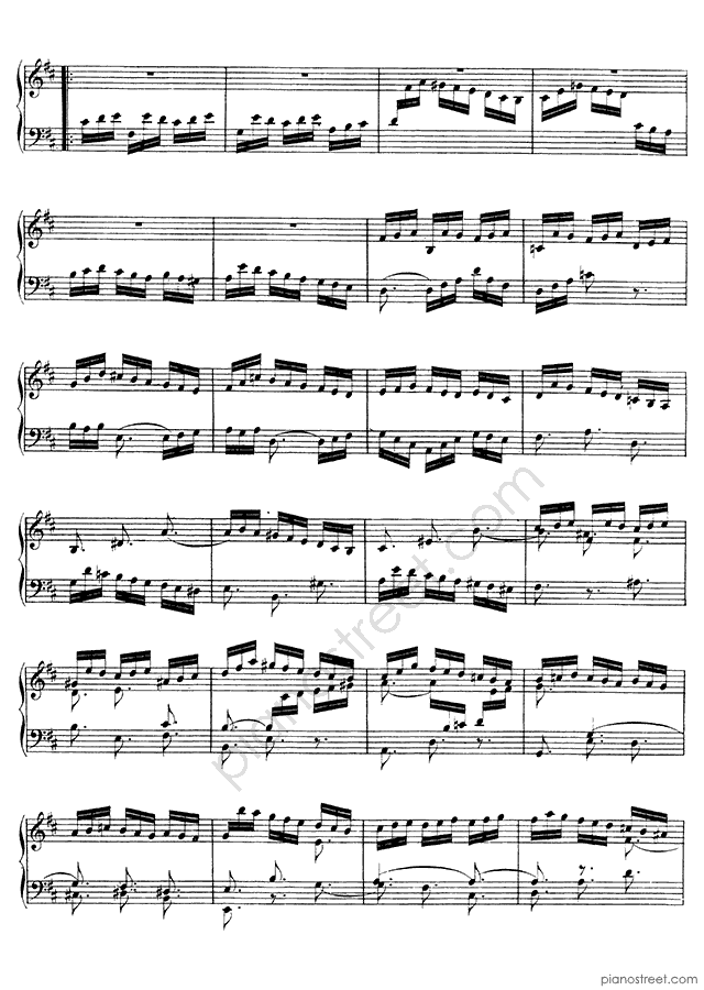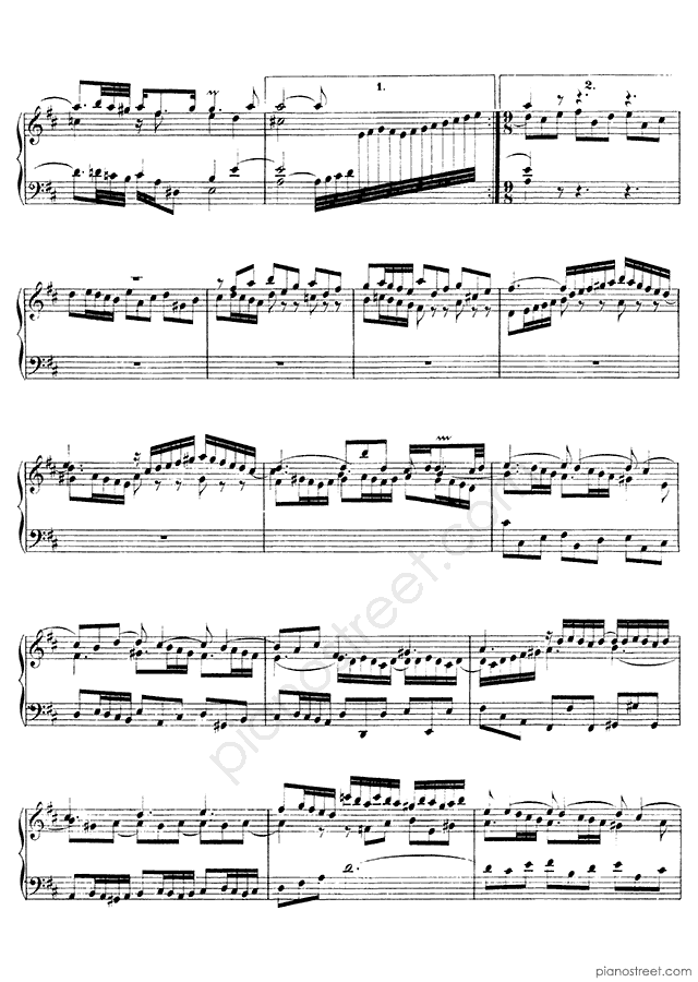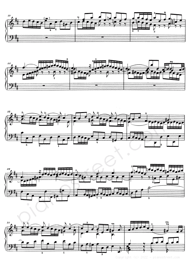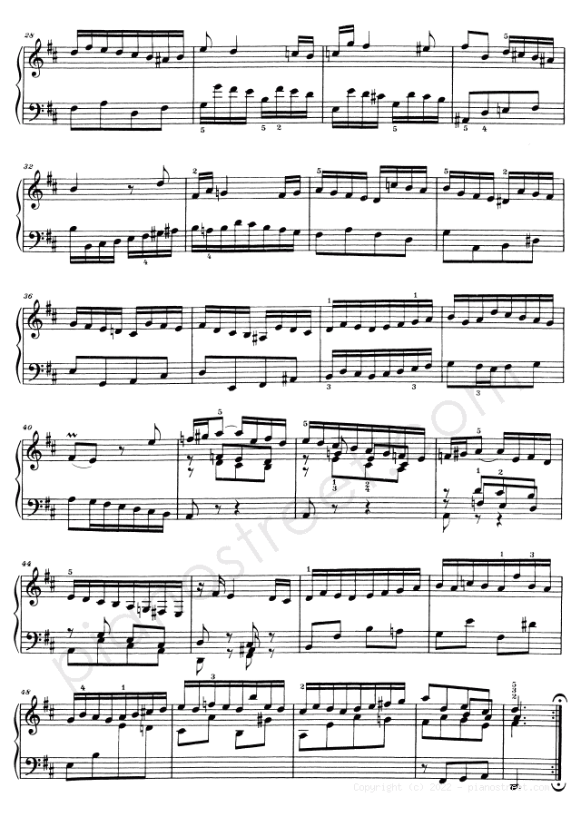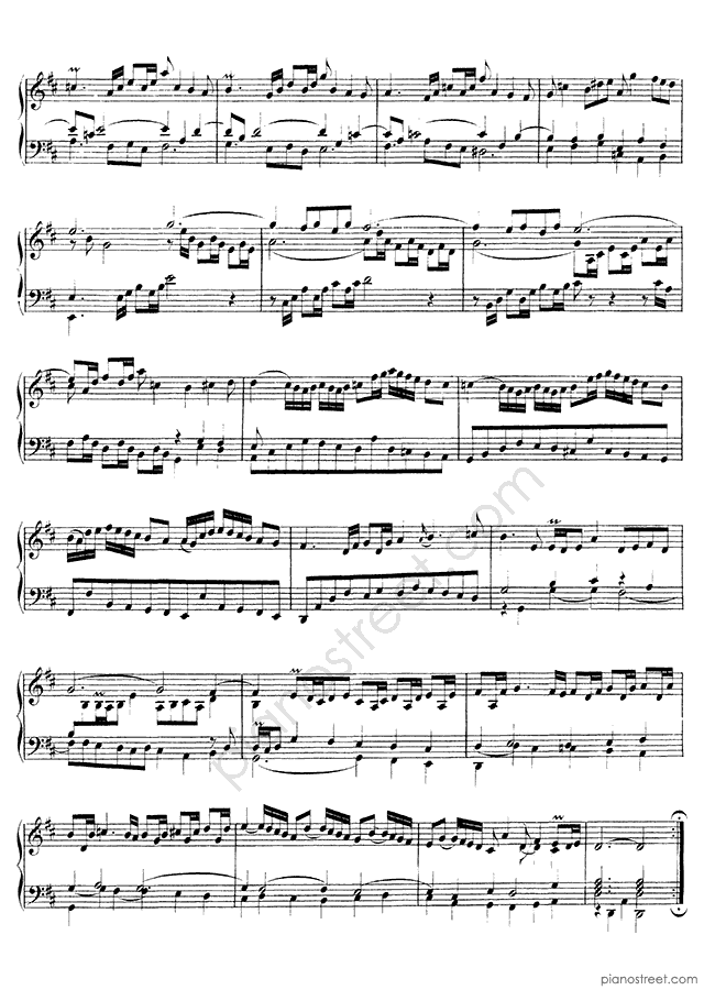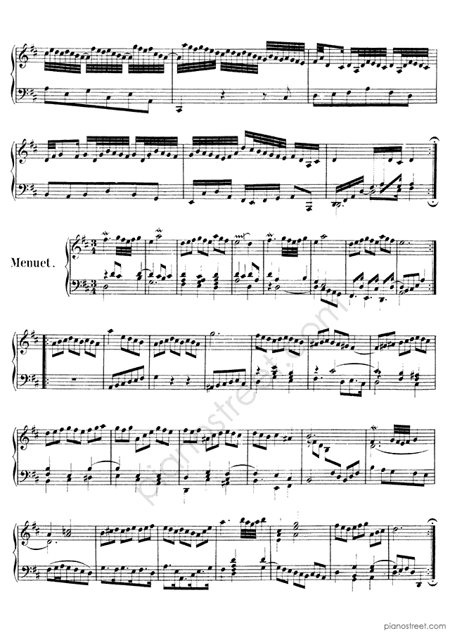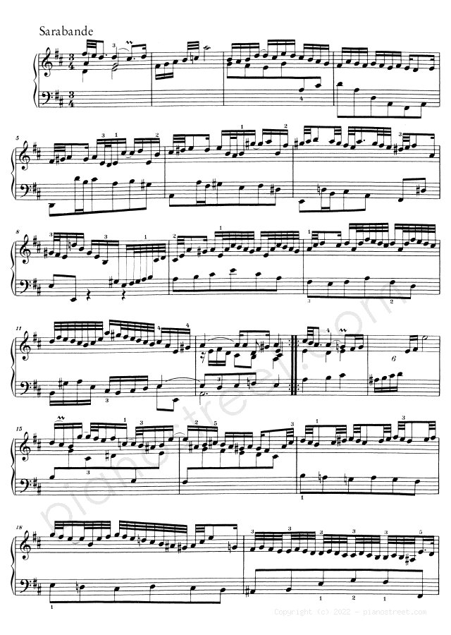 Baroque piano sheet music by Johann Sebastian Bach to download and print instantly: Partita No. 4 in the key of . Level 8+, compositional type: Polyphonic, Suite (published in 1731)