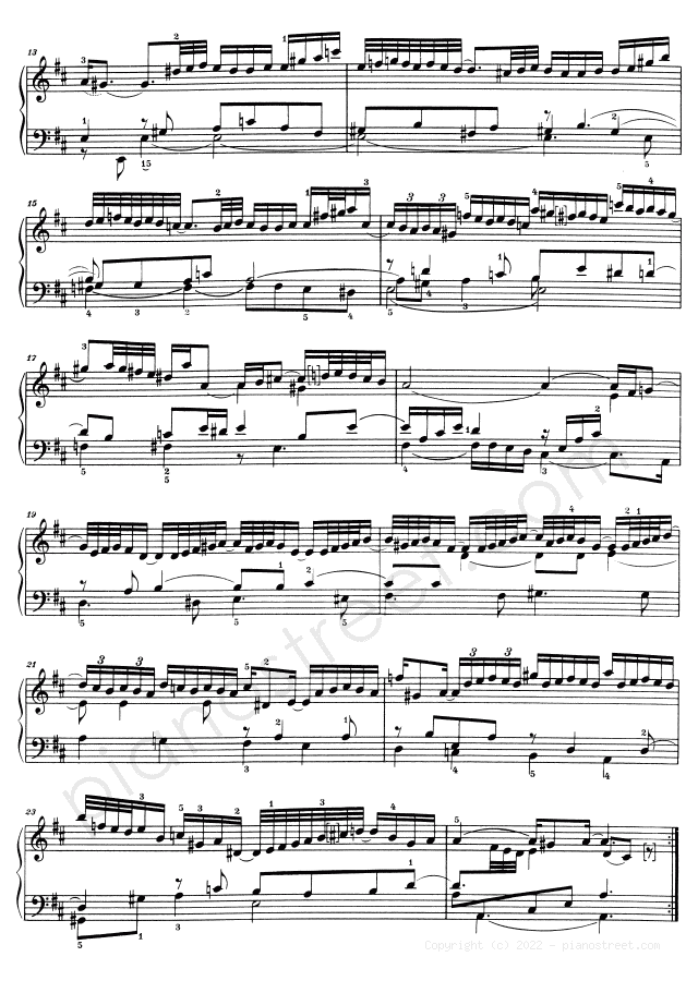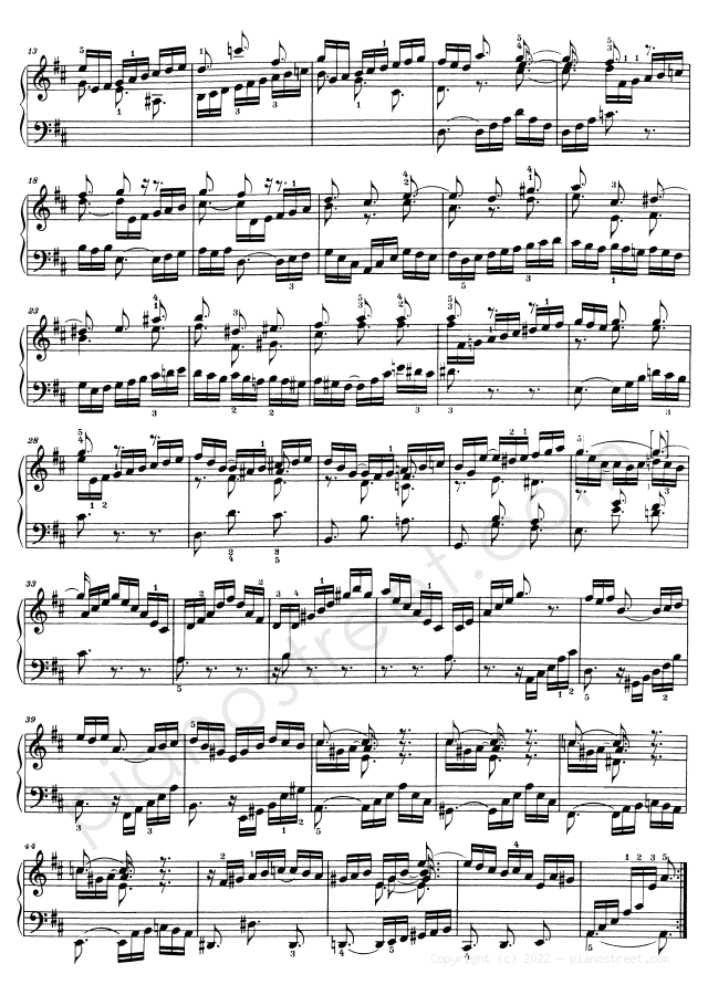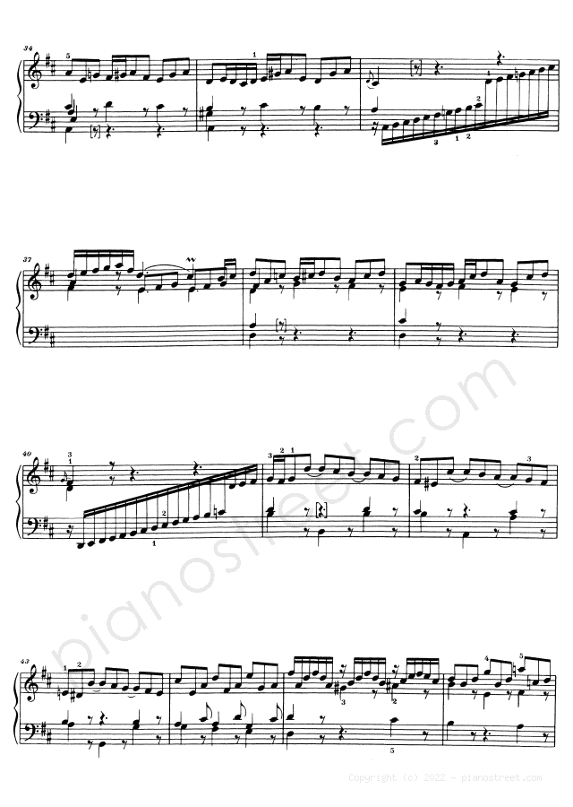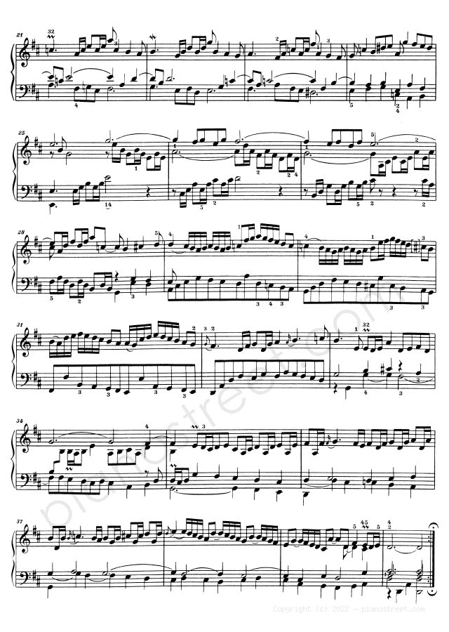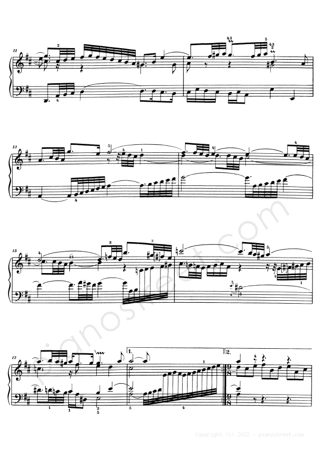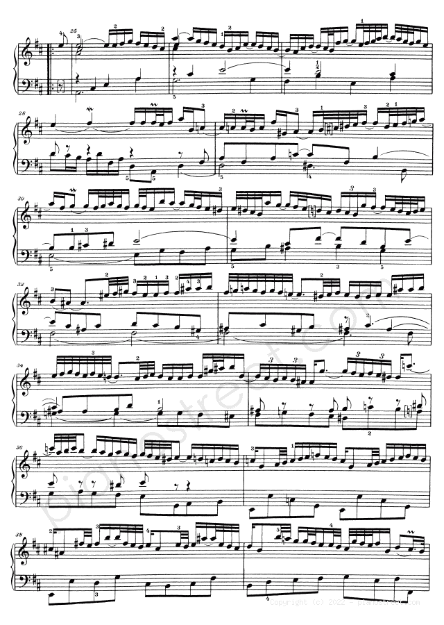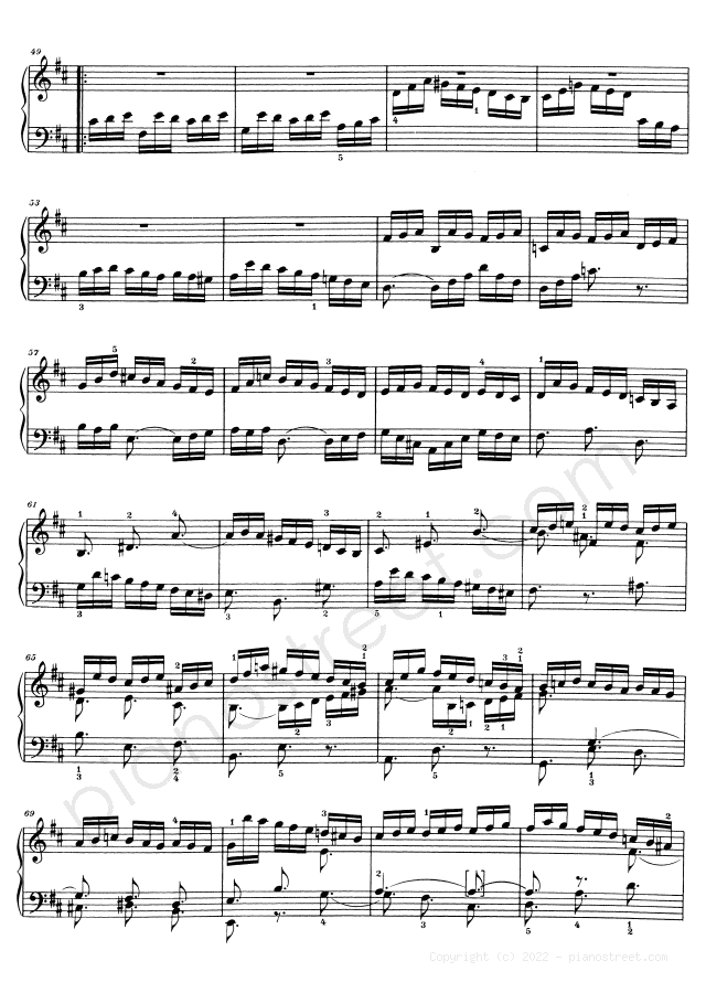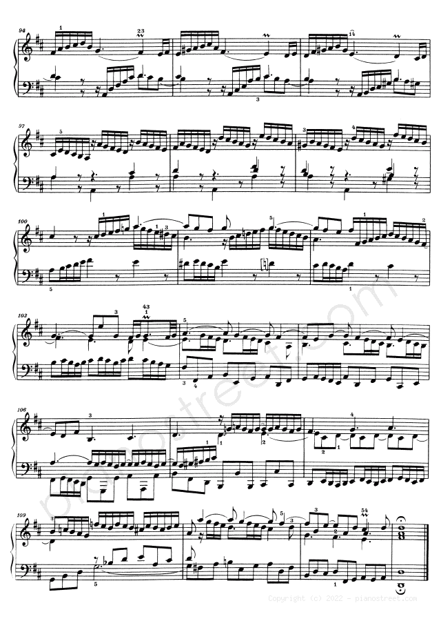 Baroque piano sheet music by Johann Sebastian Bach to download and print instantly: Partita No. 4 in the key of . Level 8+, compositional type: Polyphonic, Suite (published in 1731)