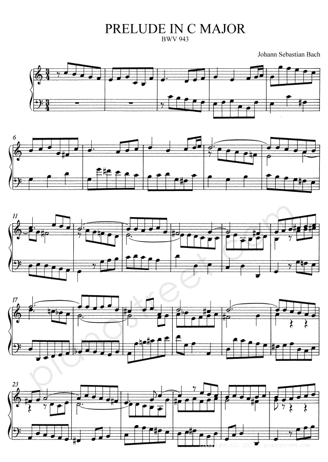 Small Prelude BWV 943 in C Major, a composition by the baroque composer Johann Sebastian Bach. The piano score of this piece was first published in 1717 and is part of Small Preludes and Fughettas by Bach.