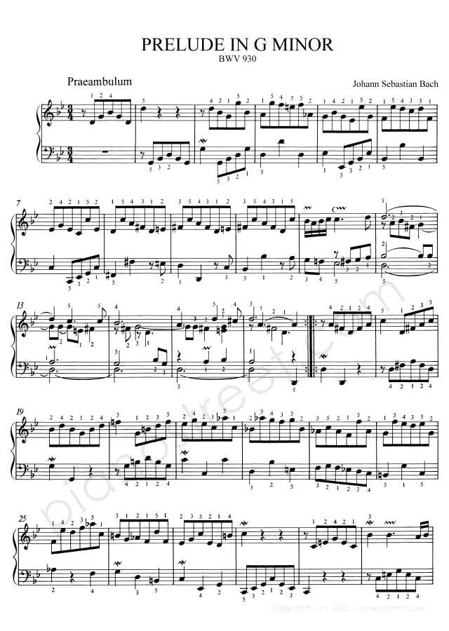 DOWNLOAD Small Prelude in G Minor BWV 930 by Johann Sebastian Bach (published in 1720) . High quality classical piano scores from the Piano Street sheet music library.