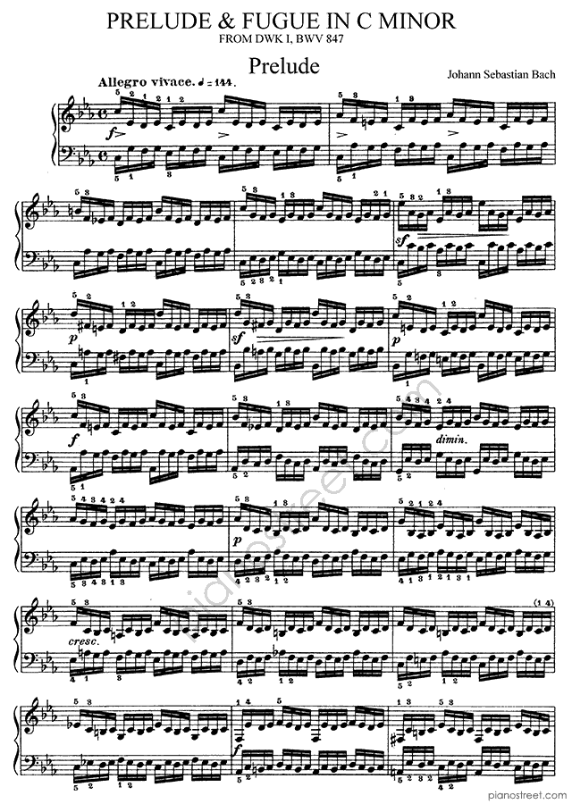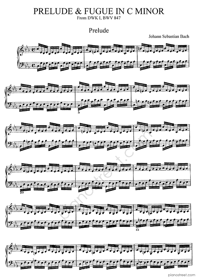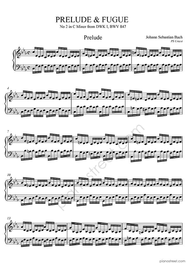 Prelude & Fugue BWV 847 No. 2 in C Minor, a composition by the baroque composer Johann Sebastian Bach. The piano score of this piece was first published in 1722 and is part of WTC 1 by Bach.