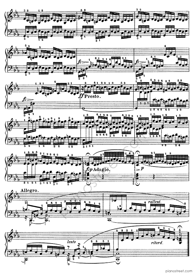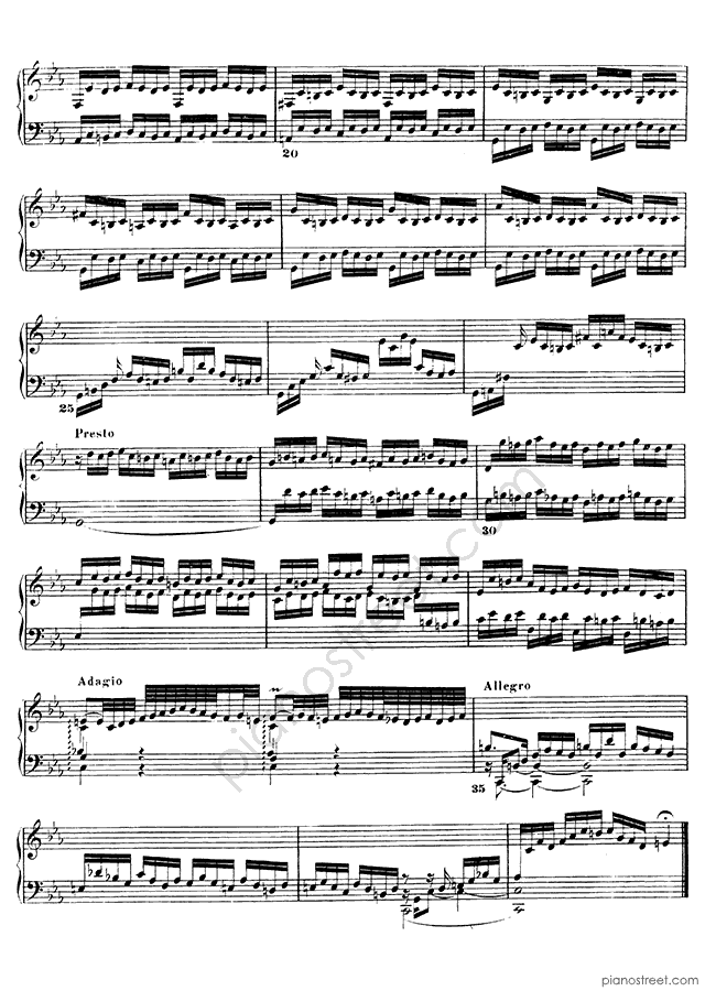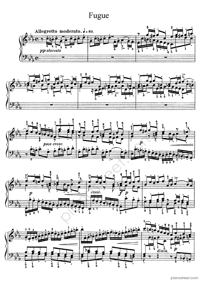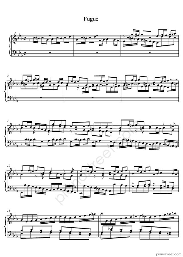 The Prelude & Fugue in c minor is usually one of the first pieces students learn from The Well-Tempered Clavier. The fiery Prelude is not only striking but can also serve as an excellent and musically rewarding Etude, demanding well-developed finger coordination to play with command and musical finish. In a similar fashion to the Prelude in C major which precedes it, it uses a repeating motif of notes to which a chord progression descending the piano is applied, adding a tricky coda marked Presto, and even a short recitativo before the piece comes to a close.