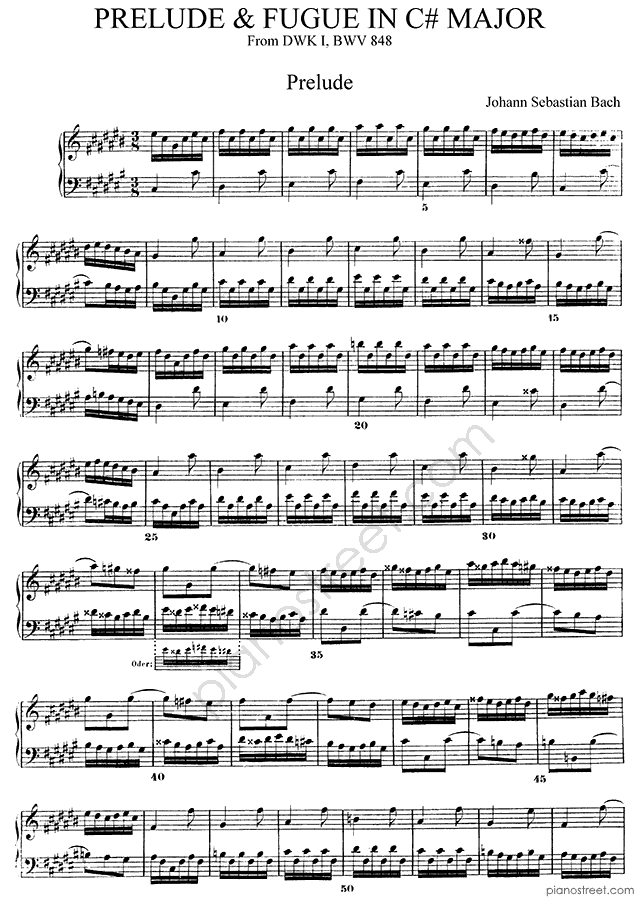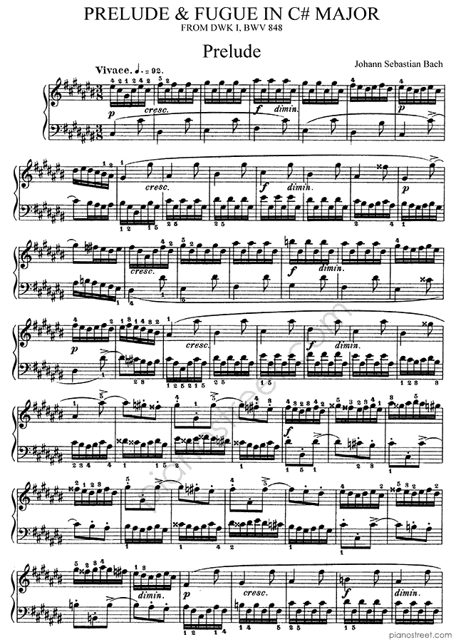 Prelude & Fugue in C-sharp Major - BWV 848 No. 3 is a piano piece by the baroque composer Johann Sebastian Bach who lived between the years 1685 and 1750.