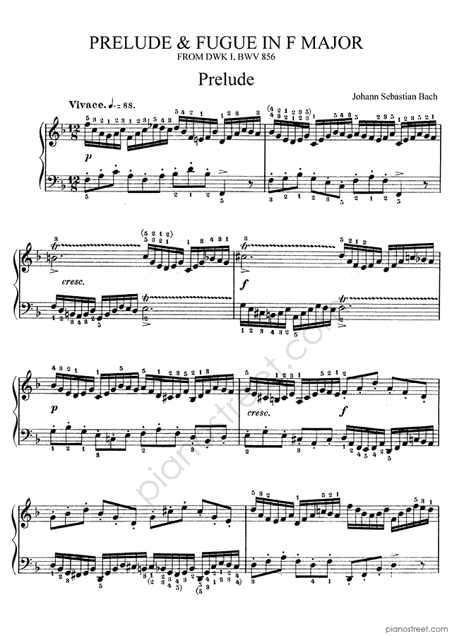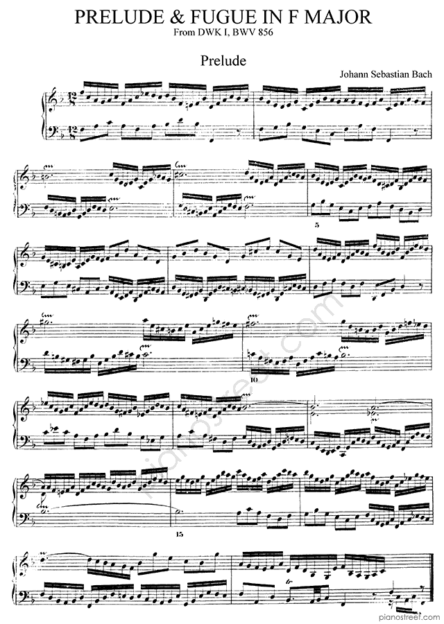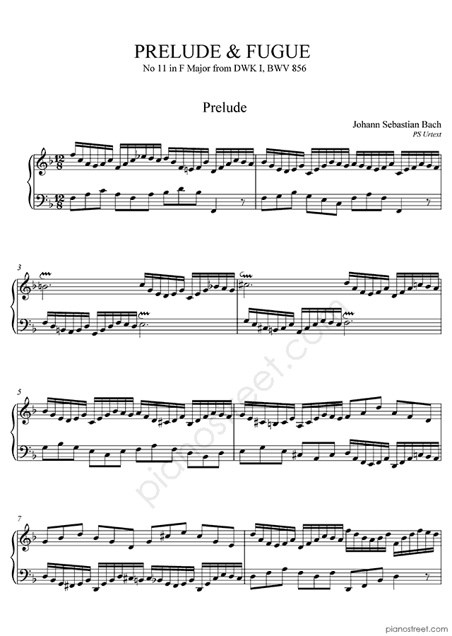 DOWNLOAD Prelude & Fugue in F Major BWV 856 No. 11 by Johann Sebastian Bach (published in 1722) . High quality classical piano scores from the Piano Street sheet music library.