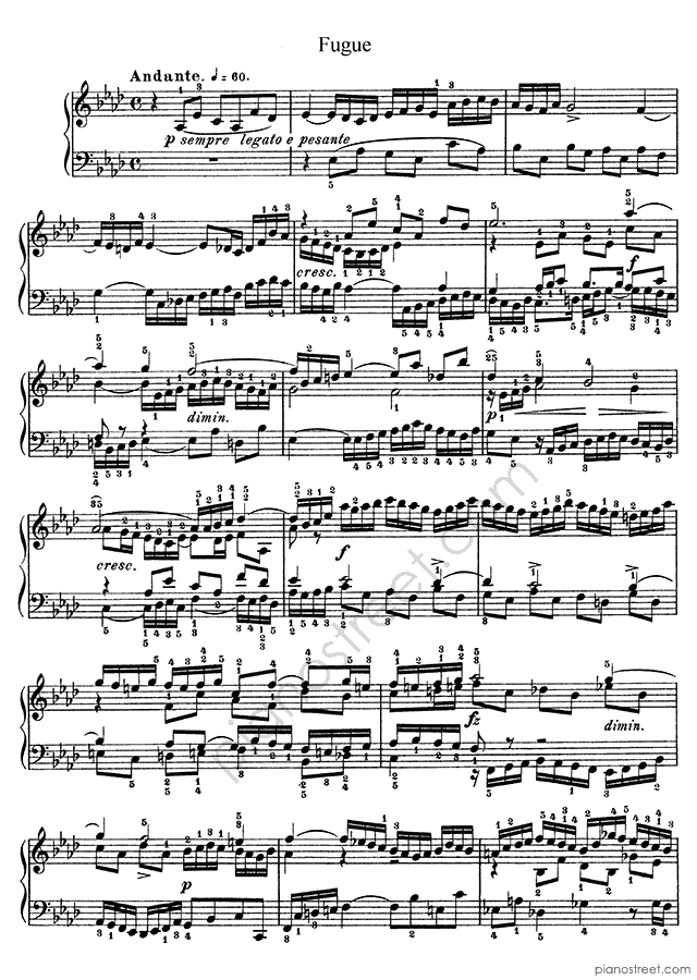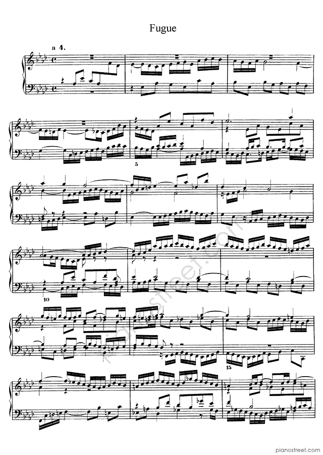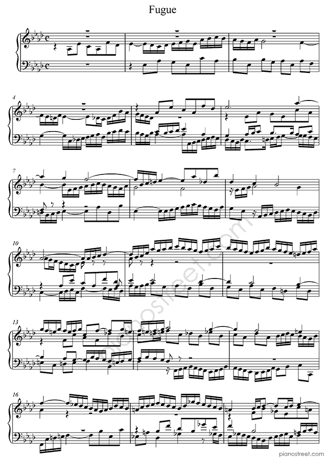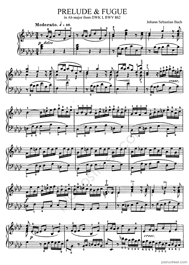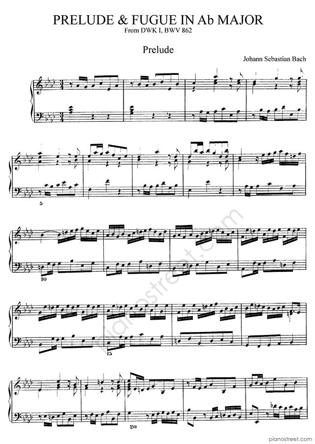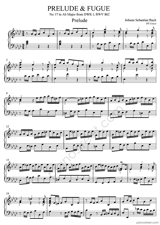 Bach: Prelude & Fugue BWV 862 No. 17 in A-flat Major (published in 1722) . DOWNLOAD piano sheet music from Piano Street digital sheet music library.