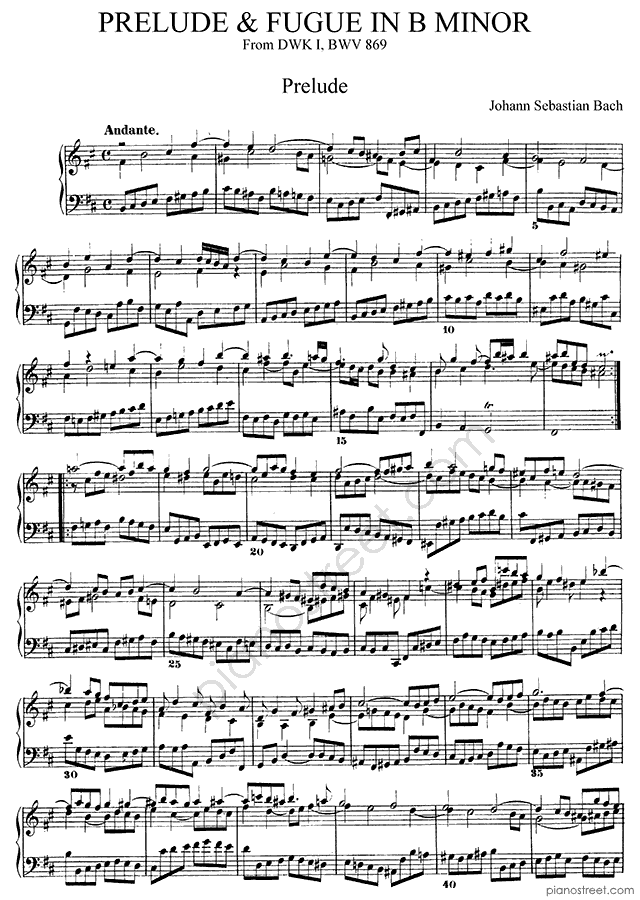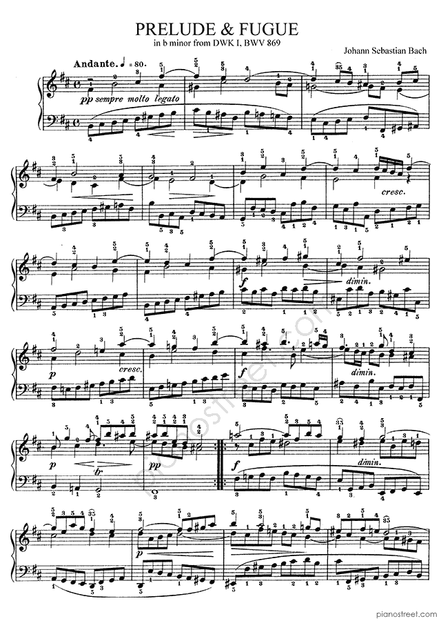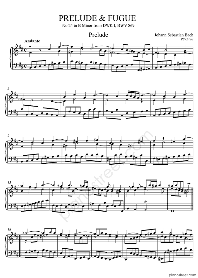 Baroque piano sheet music by Johann Sebastian Bach to download and print instantly: Prelude & Fugue BWV 869 No. 24 in the key of . Level 8, compositional type: Polyphonic, Piece (published in 1722)