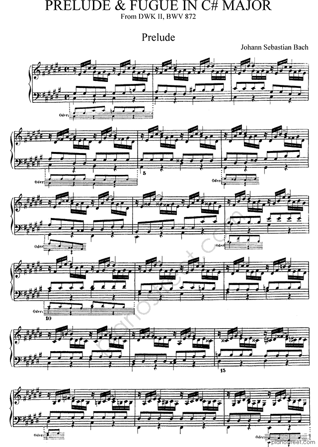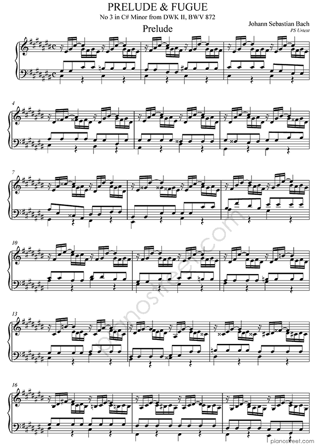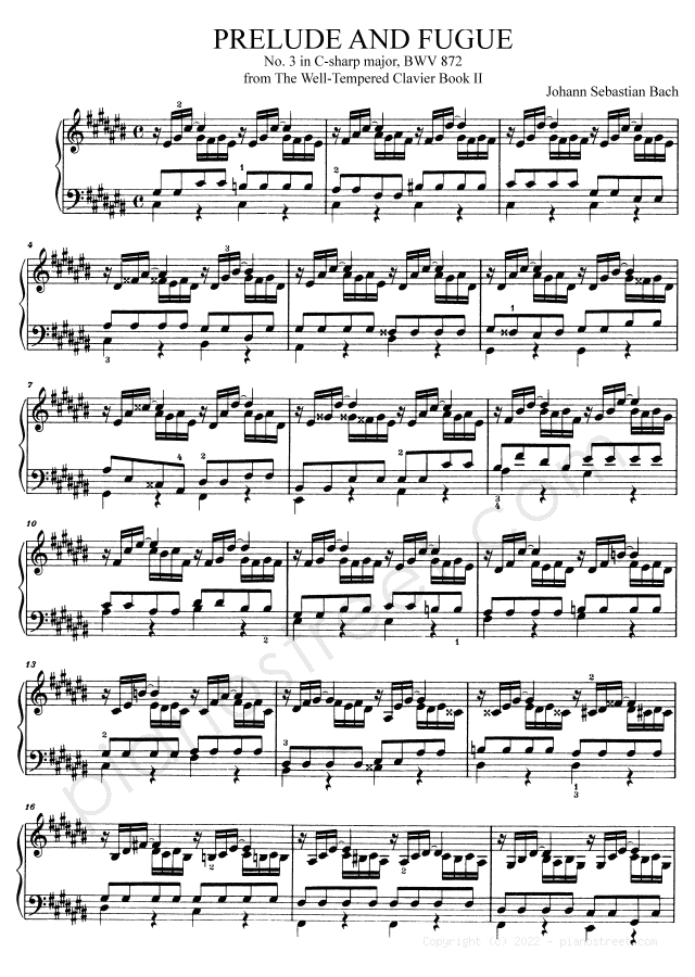 Prelude & Fugue in C-sharp Major - BWV 872 No. 3 is a piano piece by the baroque composer Johann Sebastian Bach who lived between the years 1685 and 1750.