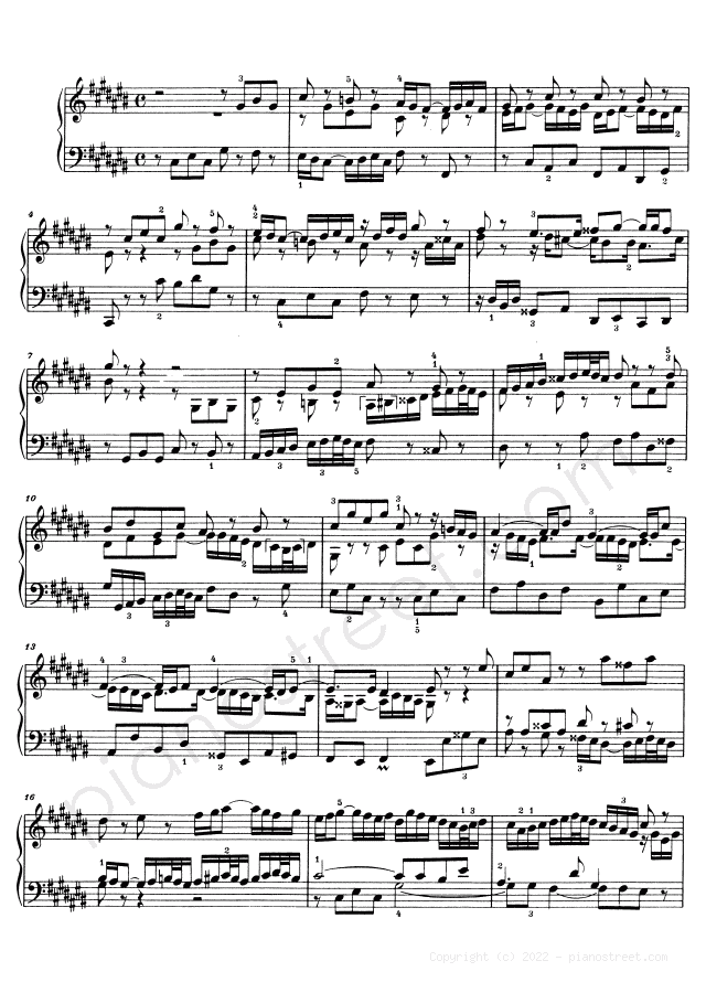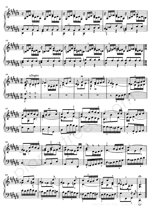 Prelude & Fugue BWV 872 No. 3 in C-sharp Major (published in 1738) from WTC 2 by Johann Sebastian Bach - piano sheet music to download and print instantly.
