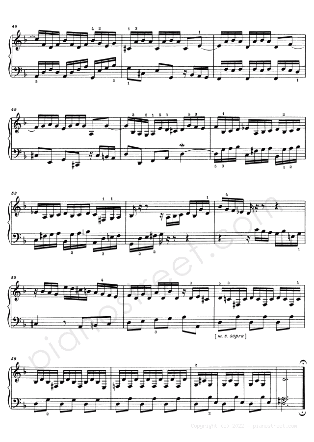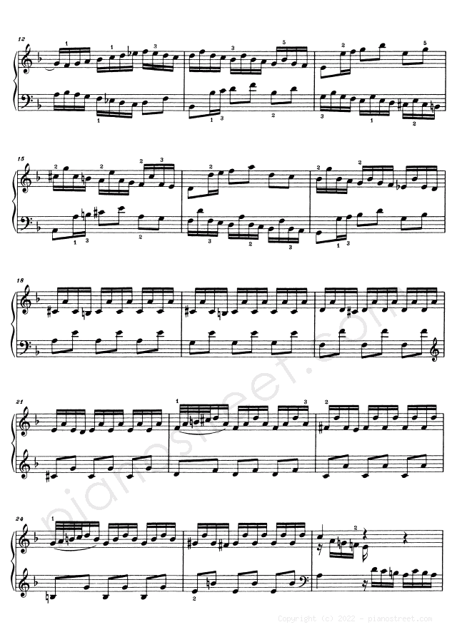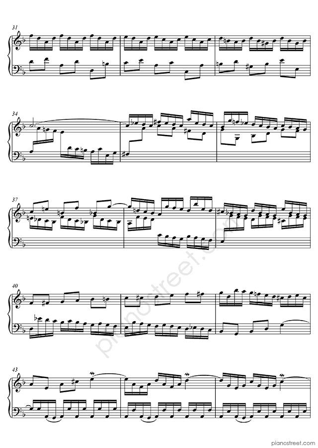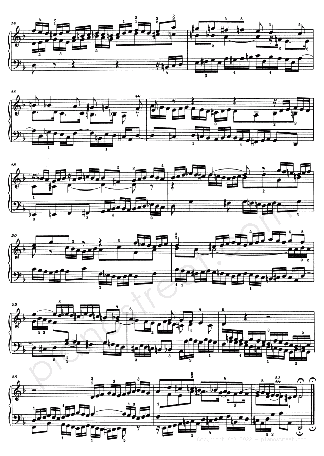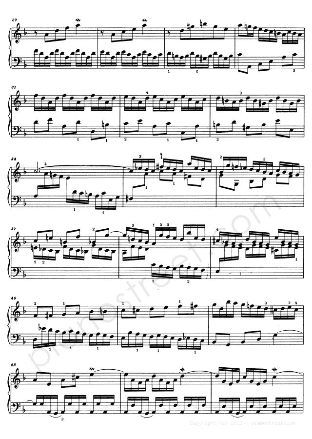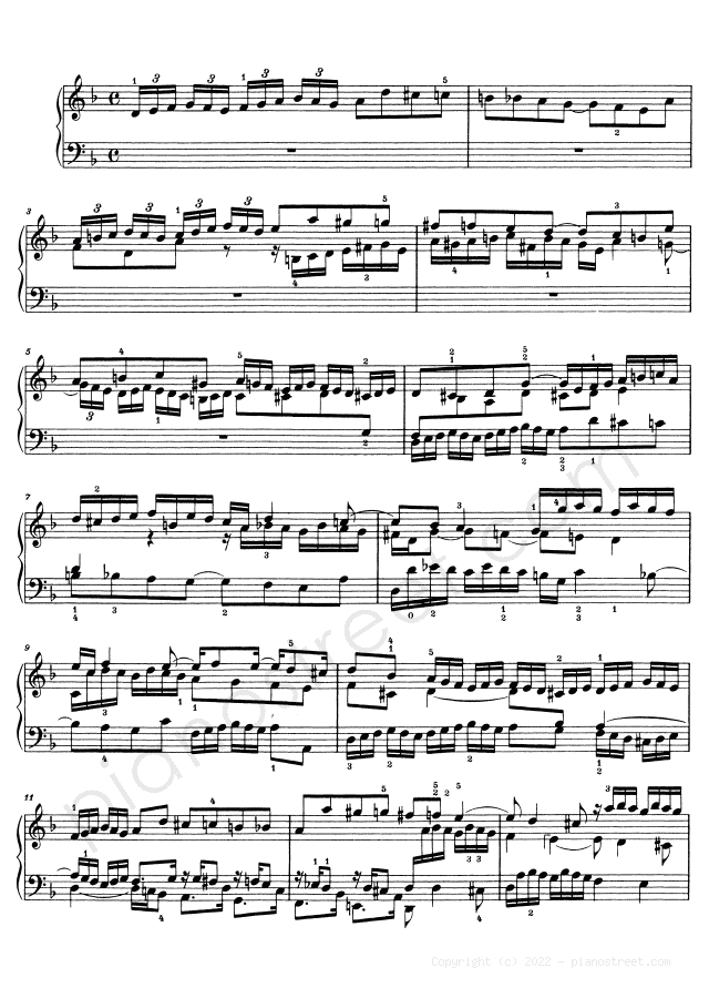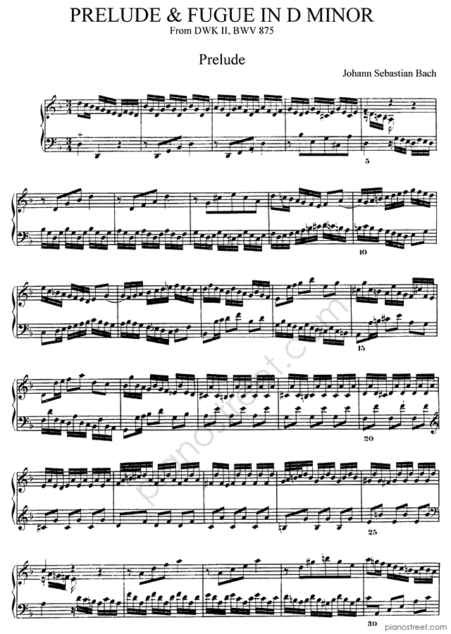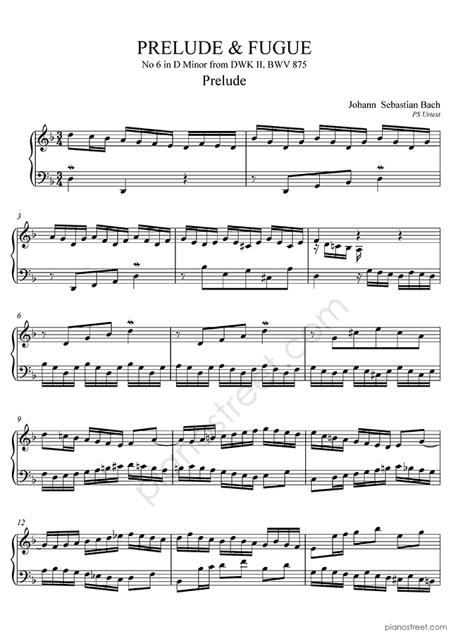 Downloadable piano sheet music from WTC 2 by Johann Sebastian Bach to print: Prelude & Fugue BWV 875 No. 6 in D Minor (published in 1738)