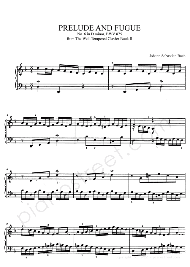 Prelude & Fugue BWV 875 No. 6 in D Minor, a composition by the baroque composer Johann Sebastian Bach. The piano score of this piece was first published in 1738 and is part of WTC 2 by Bach.