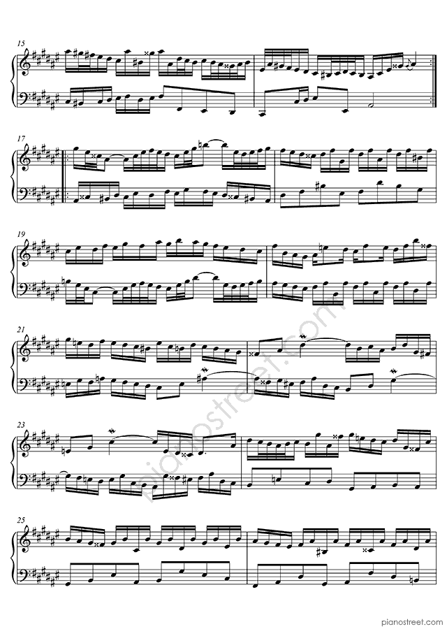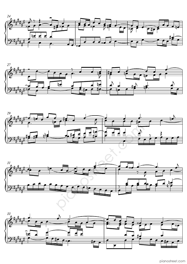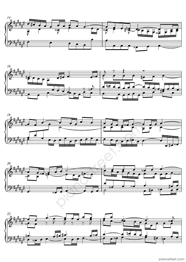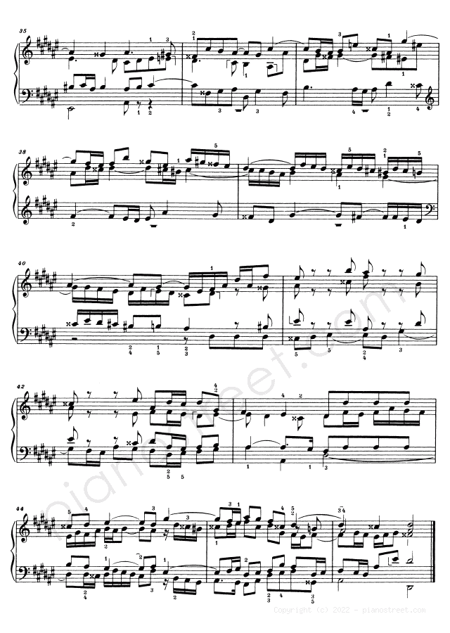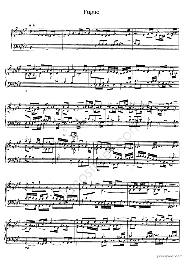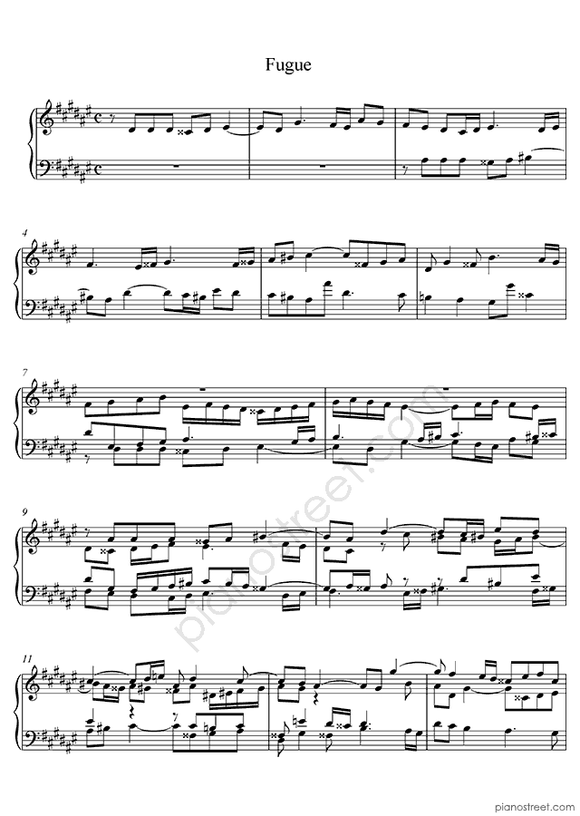 Baroque piano sheet music by Johann Sebastian Bach to download and print instantly: Prelude & Fugue BWV 877 No. 8 in the key of . Level 8, compositional type: Polyphonic (published in 1738)