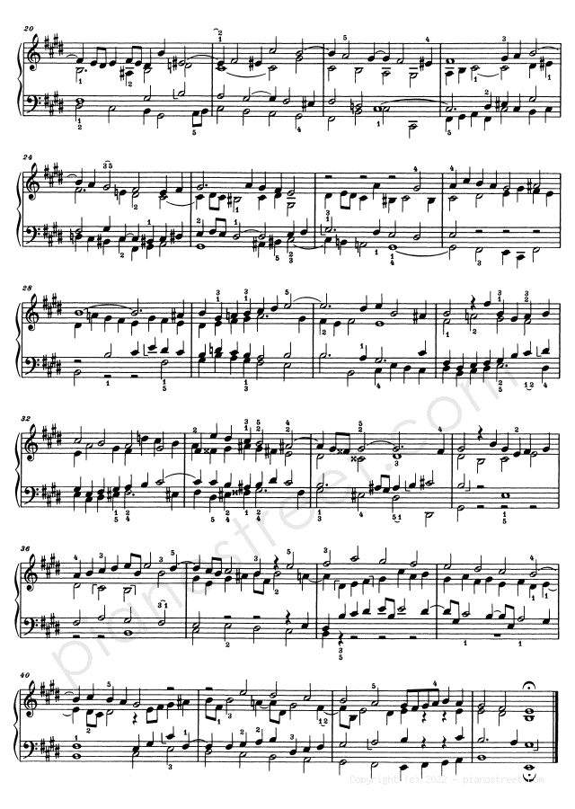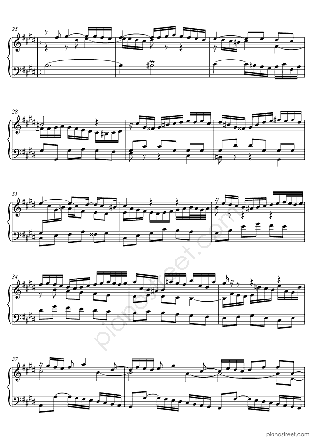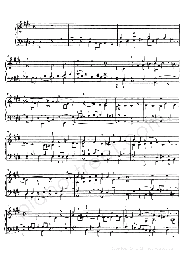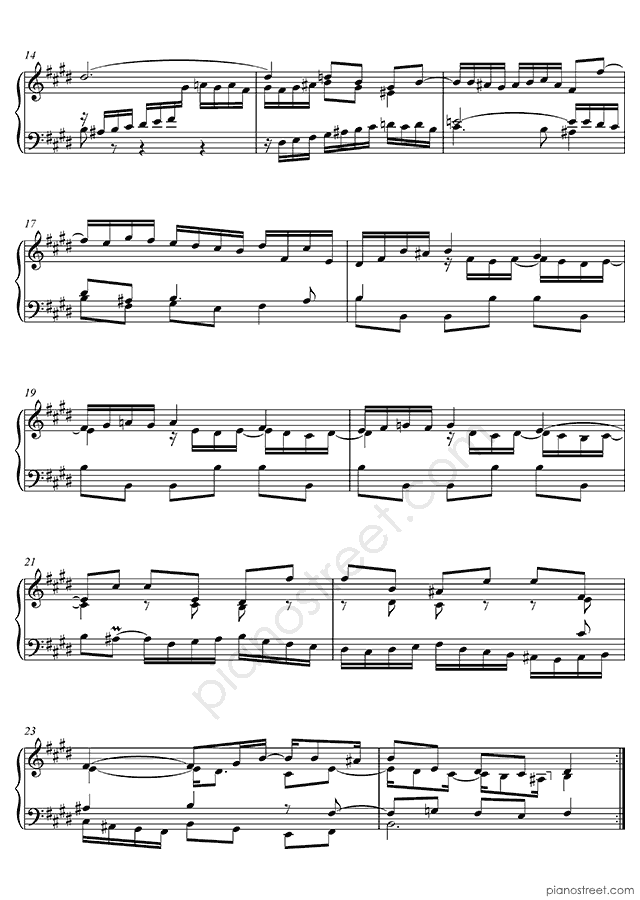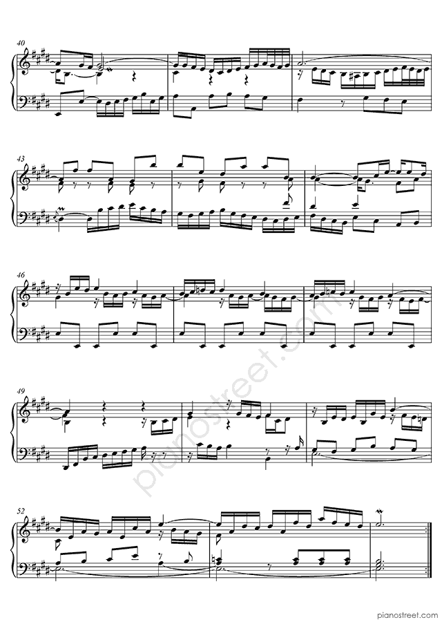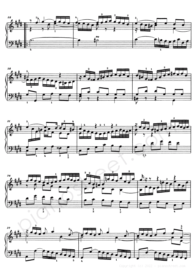 Piano sheet music and recordings. This piece is from WTC 2 by Johann Sebastian Bach: Prelude & Fugue BWV 878 No. 9 in E Major (published in 1738) . Level 8, Period: Baroque