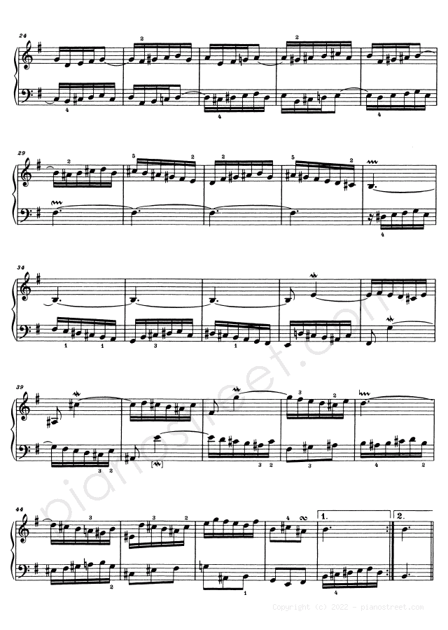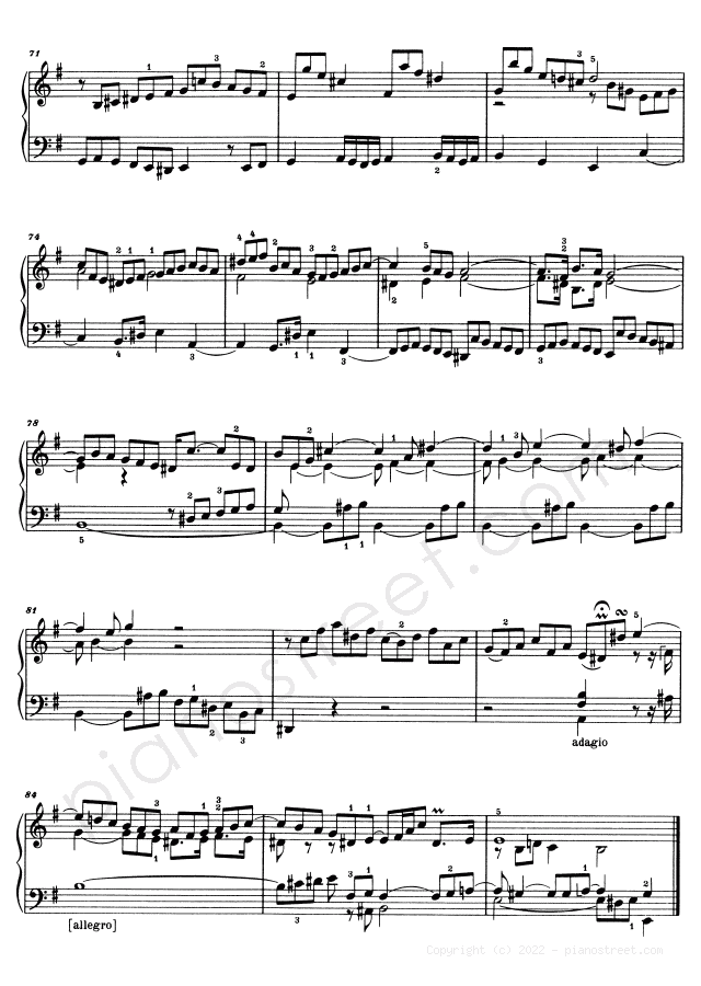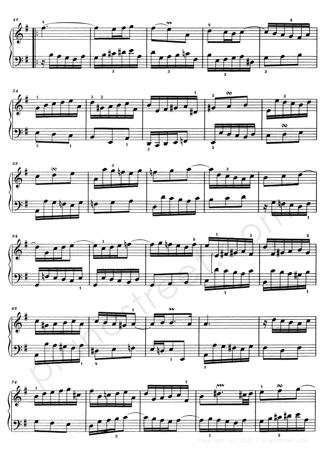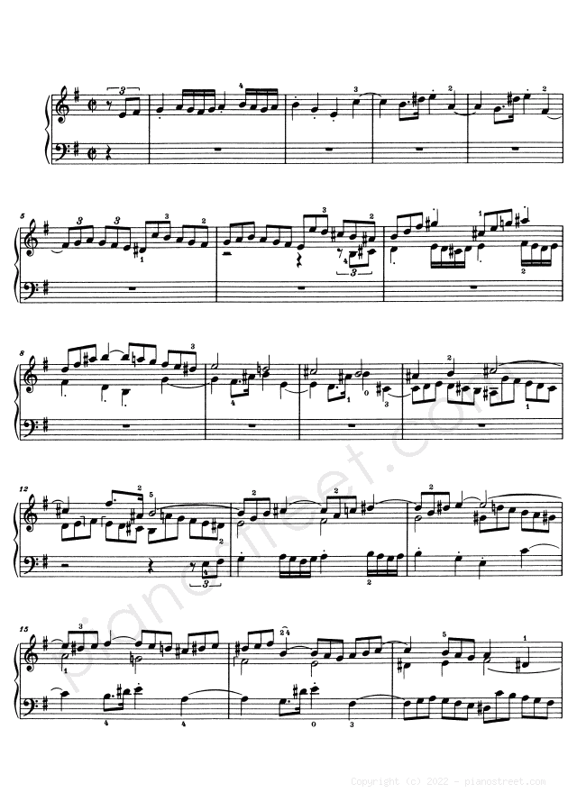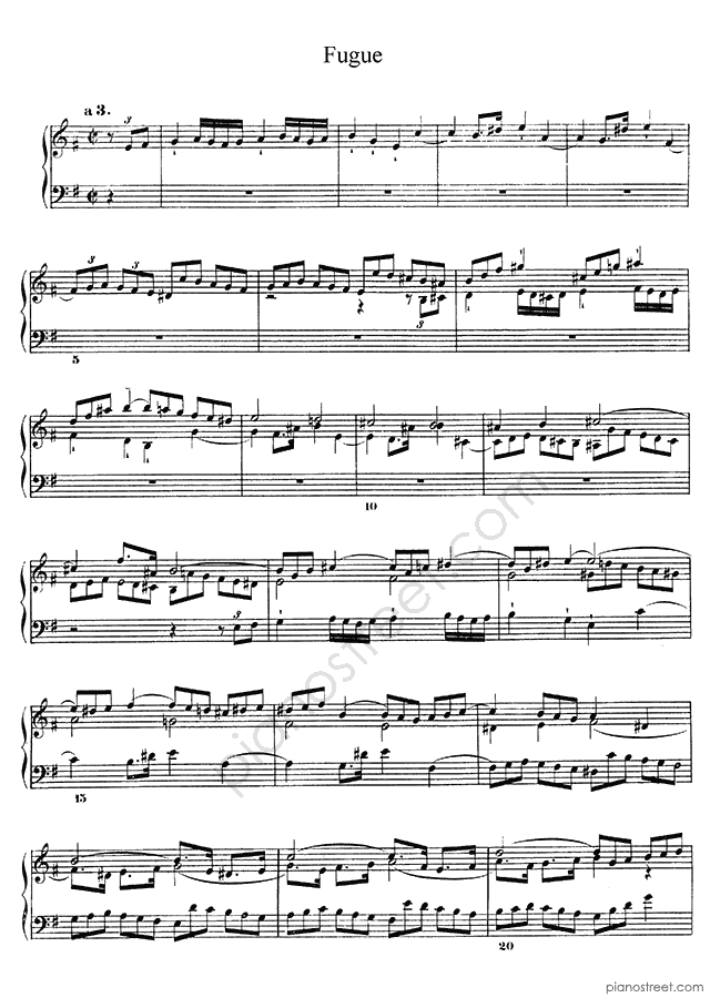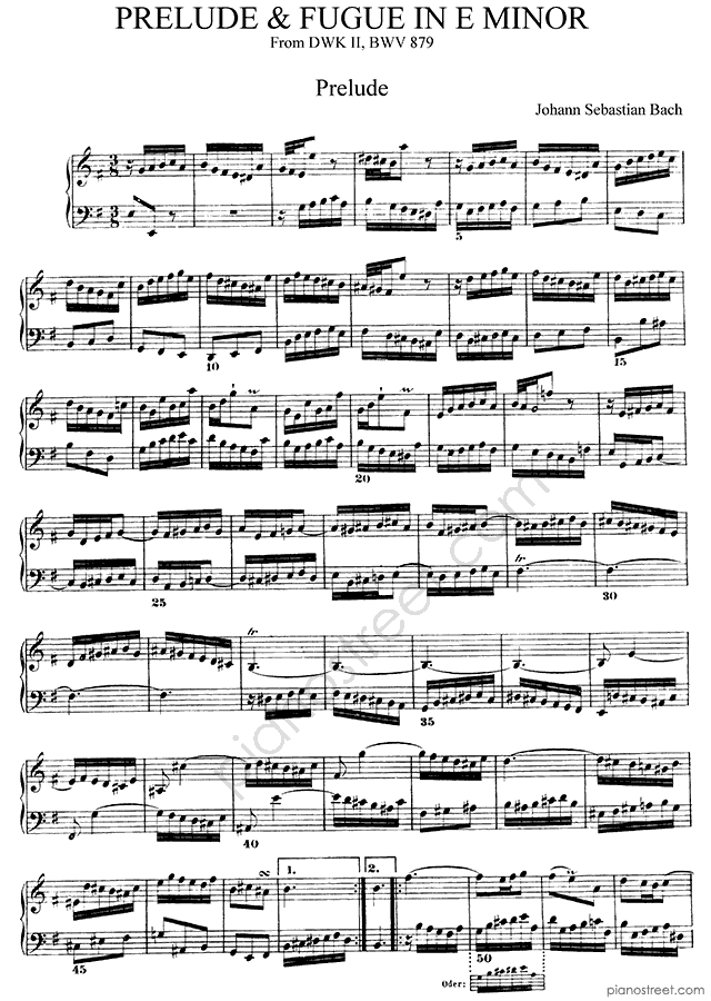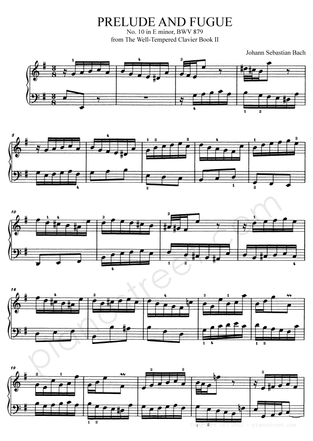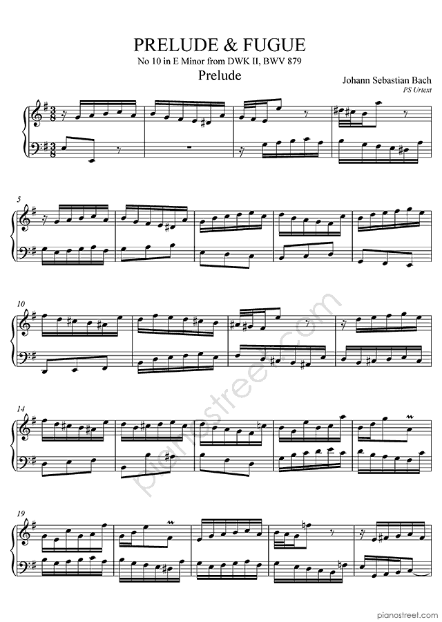 Johann Sebastian Bach: Prelude & Fugue BWV 879 No. 10 in E Minor from WTC 2 - piano sheet music to print instantly. This piece is level 8 and was composed during the Baroque period.