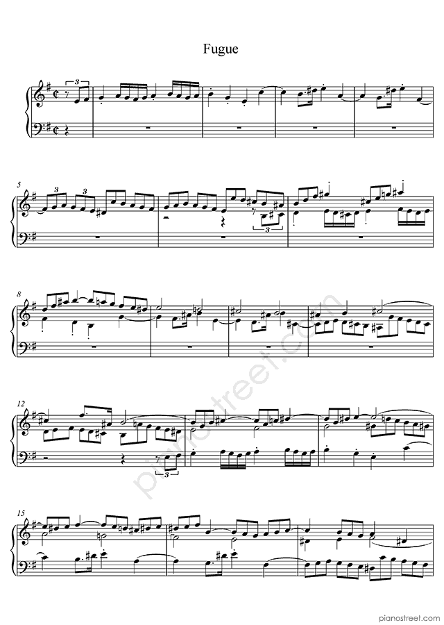 This piece is composed by Johann Sebastian Bach and was published in 1738. Title: Prelude & Fugue, BWV 879 No. 10 in E Minor from WTC 2. The difficulty level if graded by ABRSM would be approximately 8 and it belongs to the Baroque period.