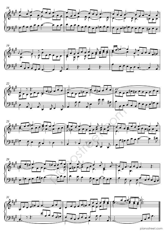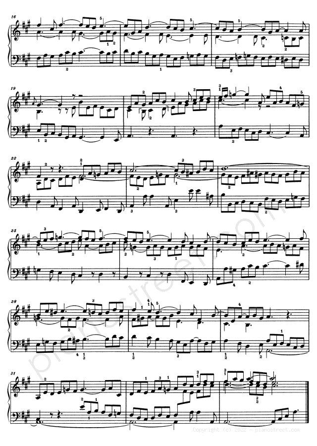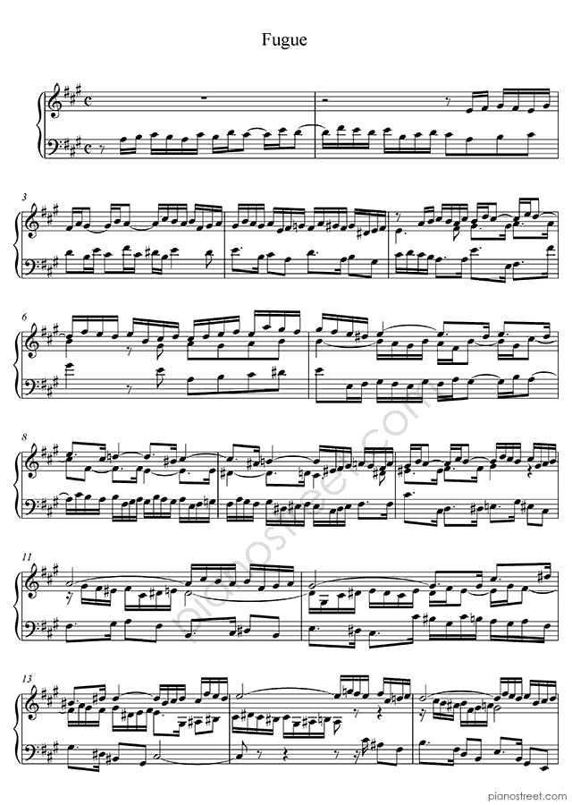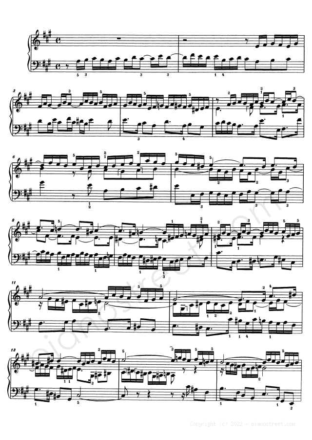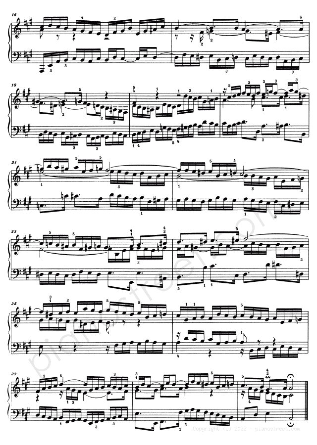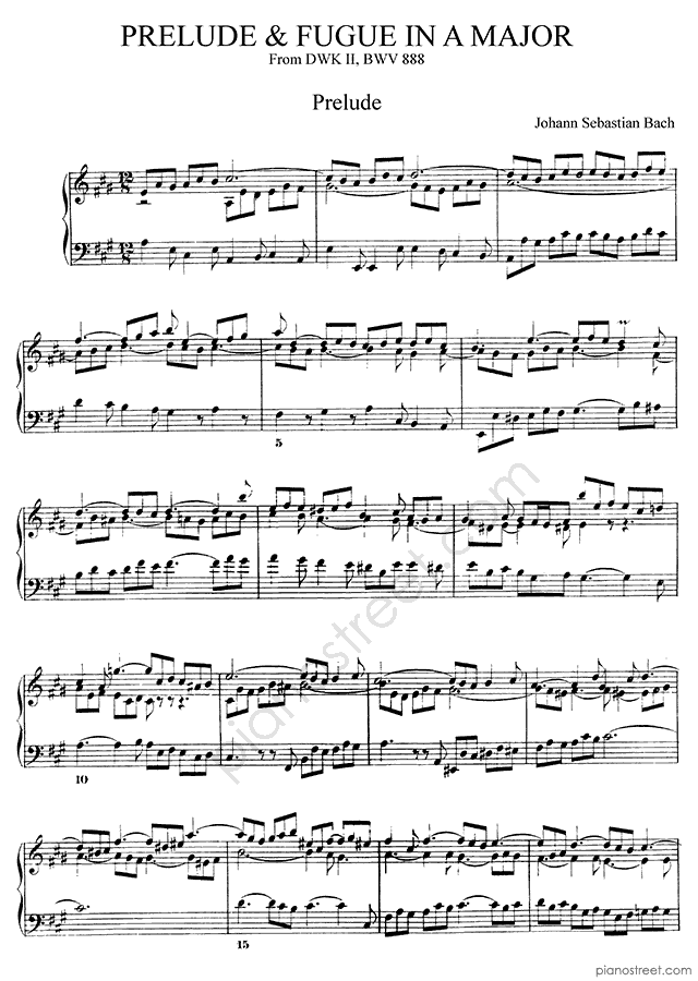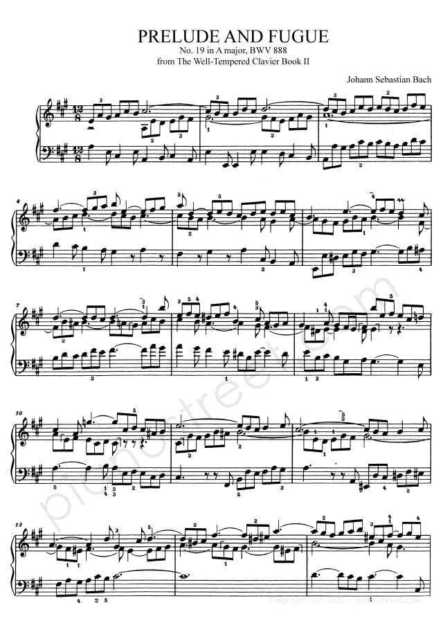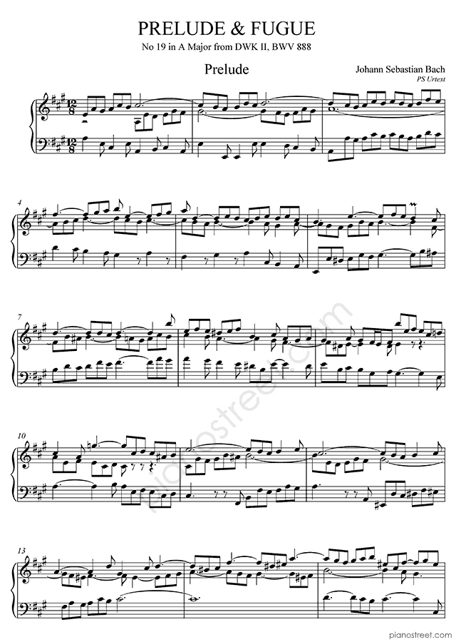 Piano sheet music and recordings. This piece is from WTC 2 by Johann Sebastian Bach: Prelude & Fugue BWV 888 No. 19 in A Major (published in 1738) . Level 8, Period: Baroque