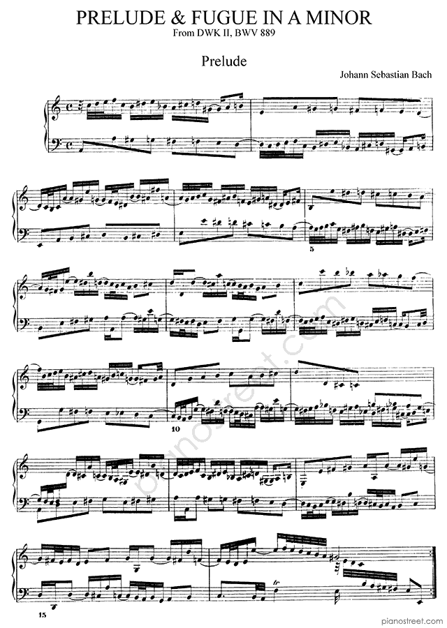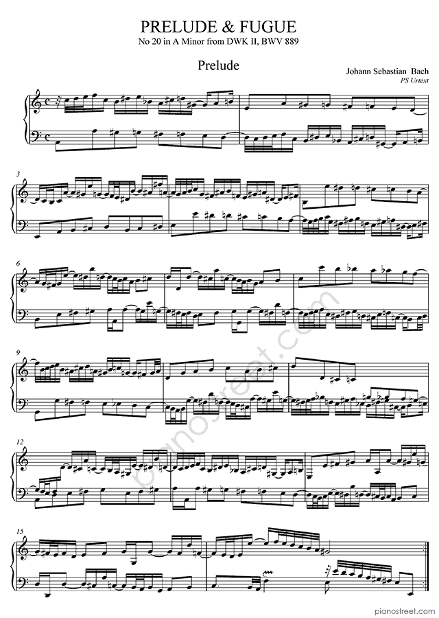 Johann Sebastian Bach: Prelude & Fugue BWV 889 No. 20 in A Minor from WTC 2 - piano sheet music to print instantly. This piece is level 8 and was composed during the Baroque period.