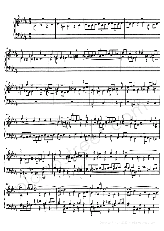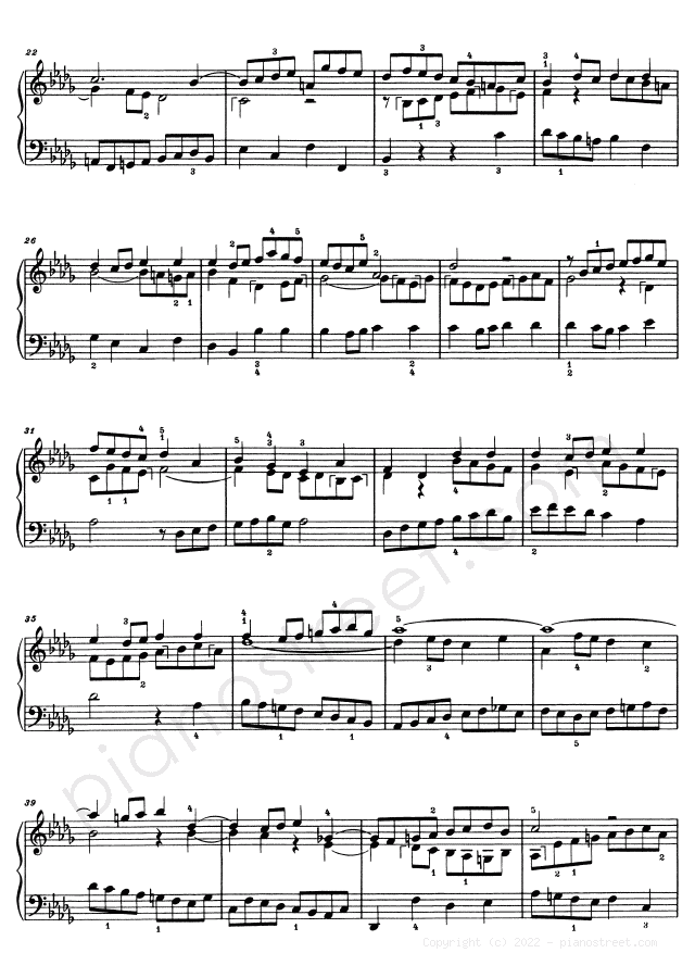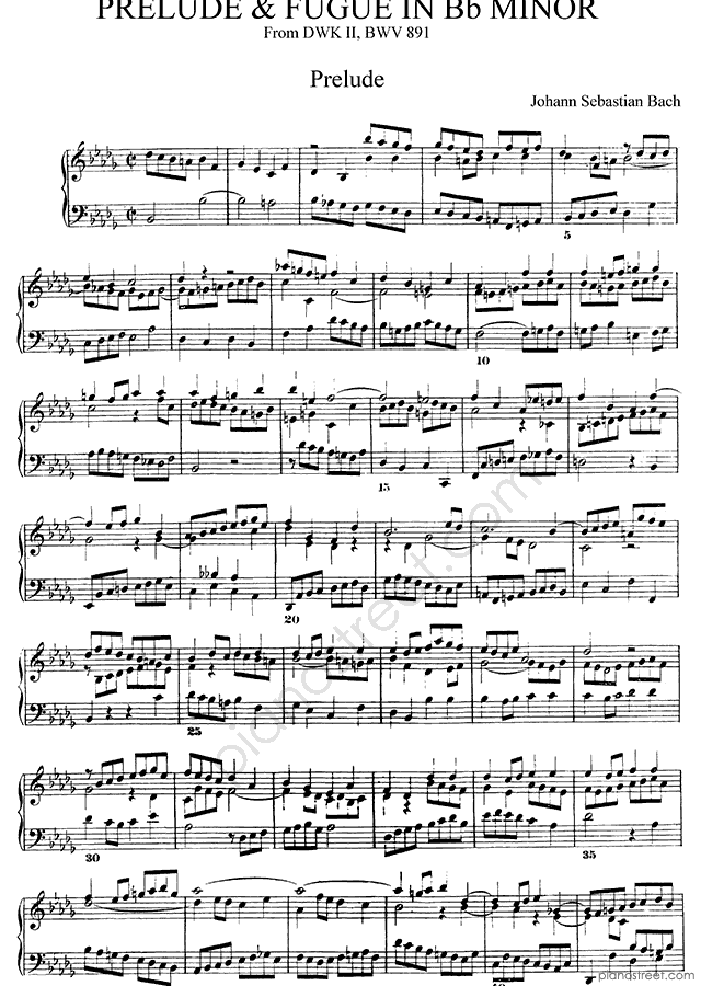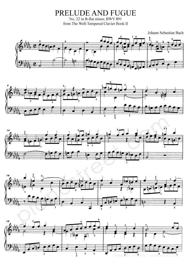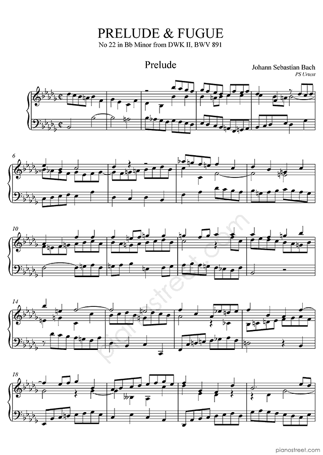 Prelude & Fugue in B-flat Minor BWV 891 No. 22 by Johann Sebastian Bach. Sheet music and recordings of thousands of piano pieces by Johann Sebastian Bach and many other famous composers to view in your digital device, print out or listen to.