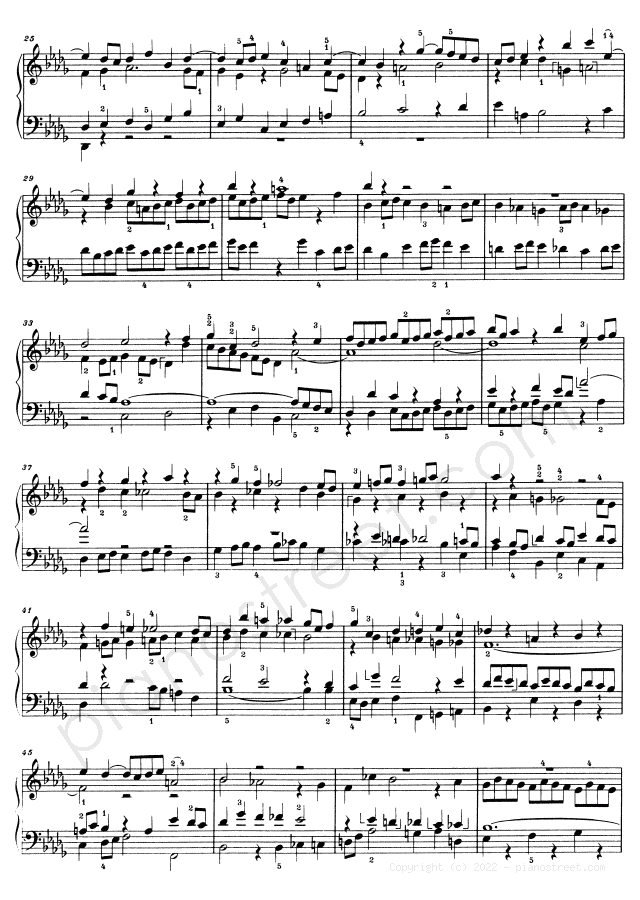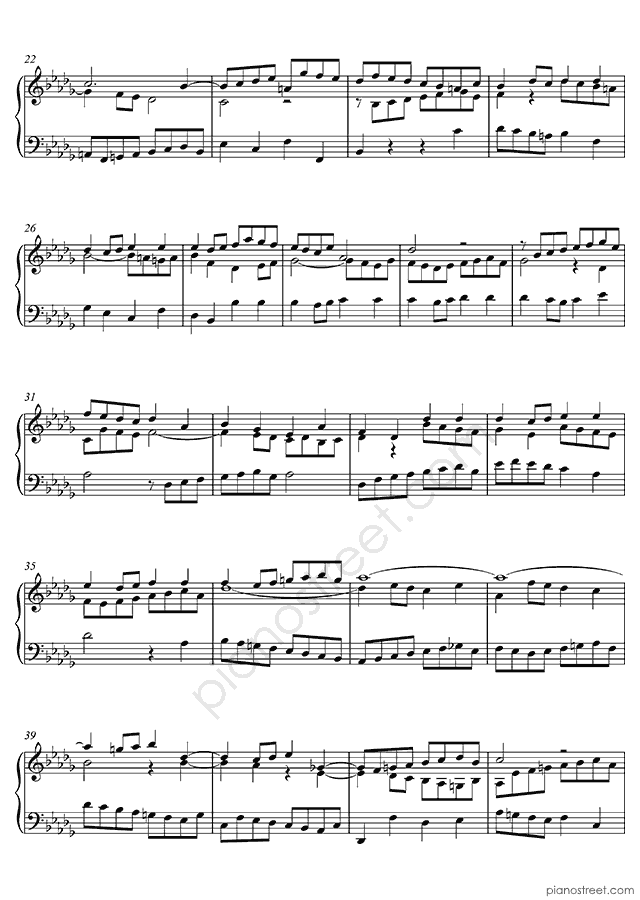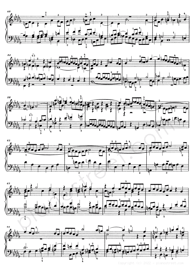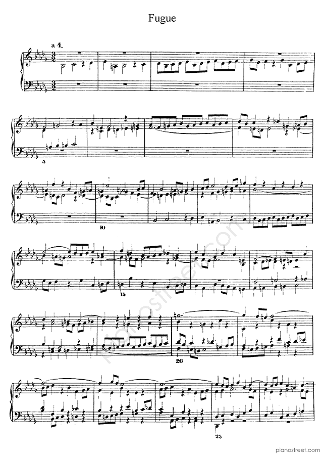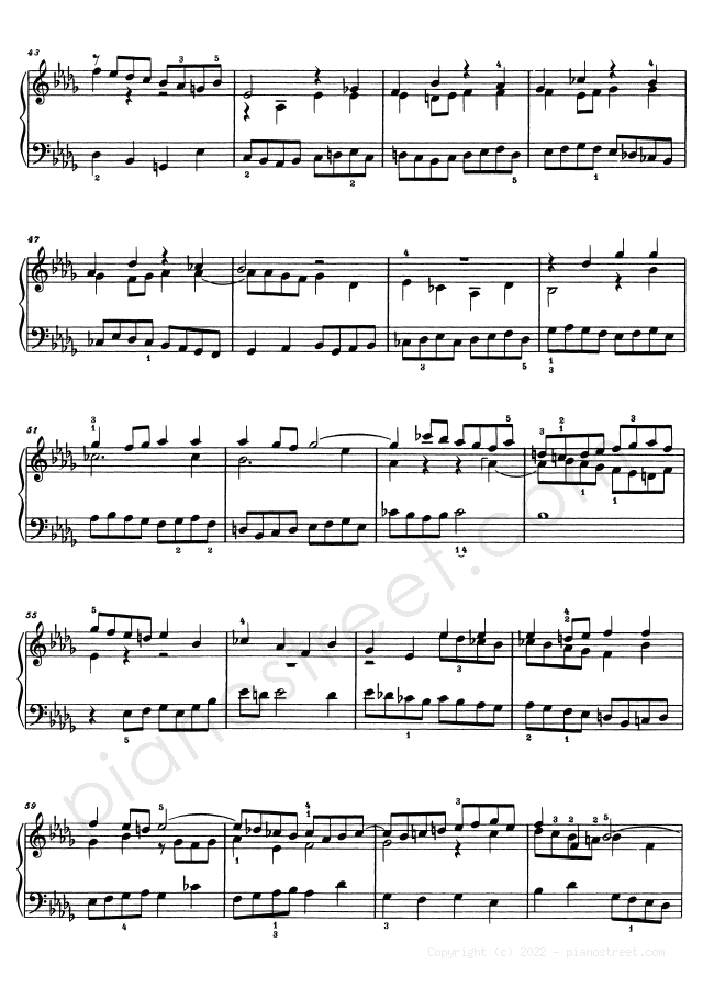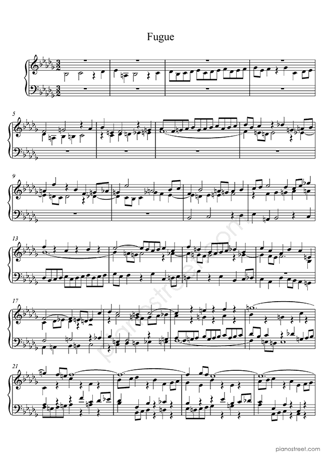 Prelude & Fugue in B-flat Minor BWV 891 No. 22 by Johann Sebastian Bach. Sheet music and recordings of thousands of piano pieces by Johann Sebastian Bach and many other famous composers to view in your digital device, print out or listen to.