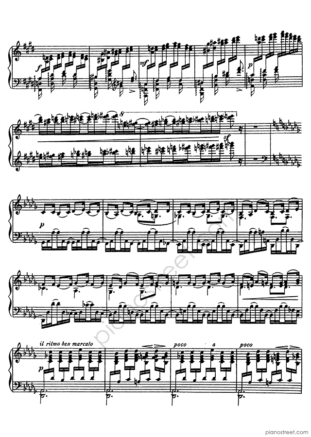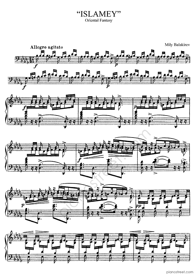 Mily Alexeyevich Balakirev, who was one of the prominent composers active in the Late Romantic era, wrote this piece titled "Islamey - Oriental Fantasy" in D-flat Major . The composition is categorized as "Piece" in the sheet music library and the level of difficulty in the piano music database is 8+.