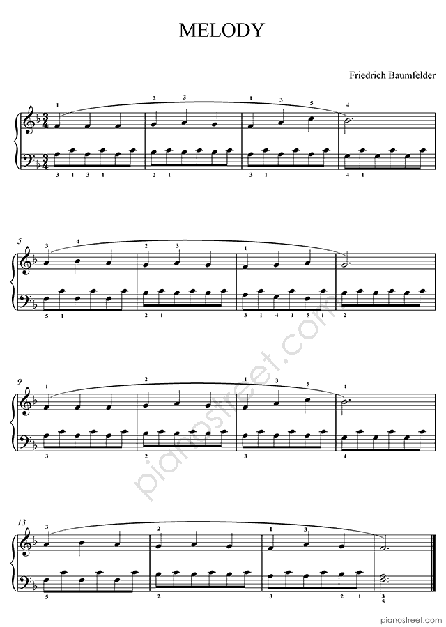 Downloadable piano sheet music by Friedrich Baumfelder to print: Melody in F Major