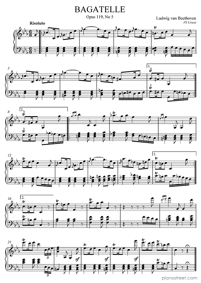 Bagatelle Op. 119 No. 5 in C Minor (published in 1822) from Bagatelles by Ludwig van Beethoven - piano sheet music to download and print instantly.